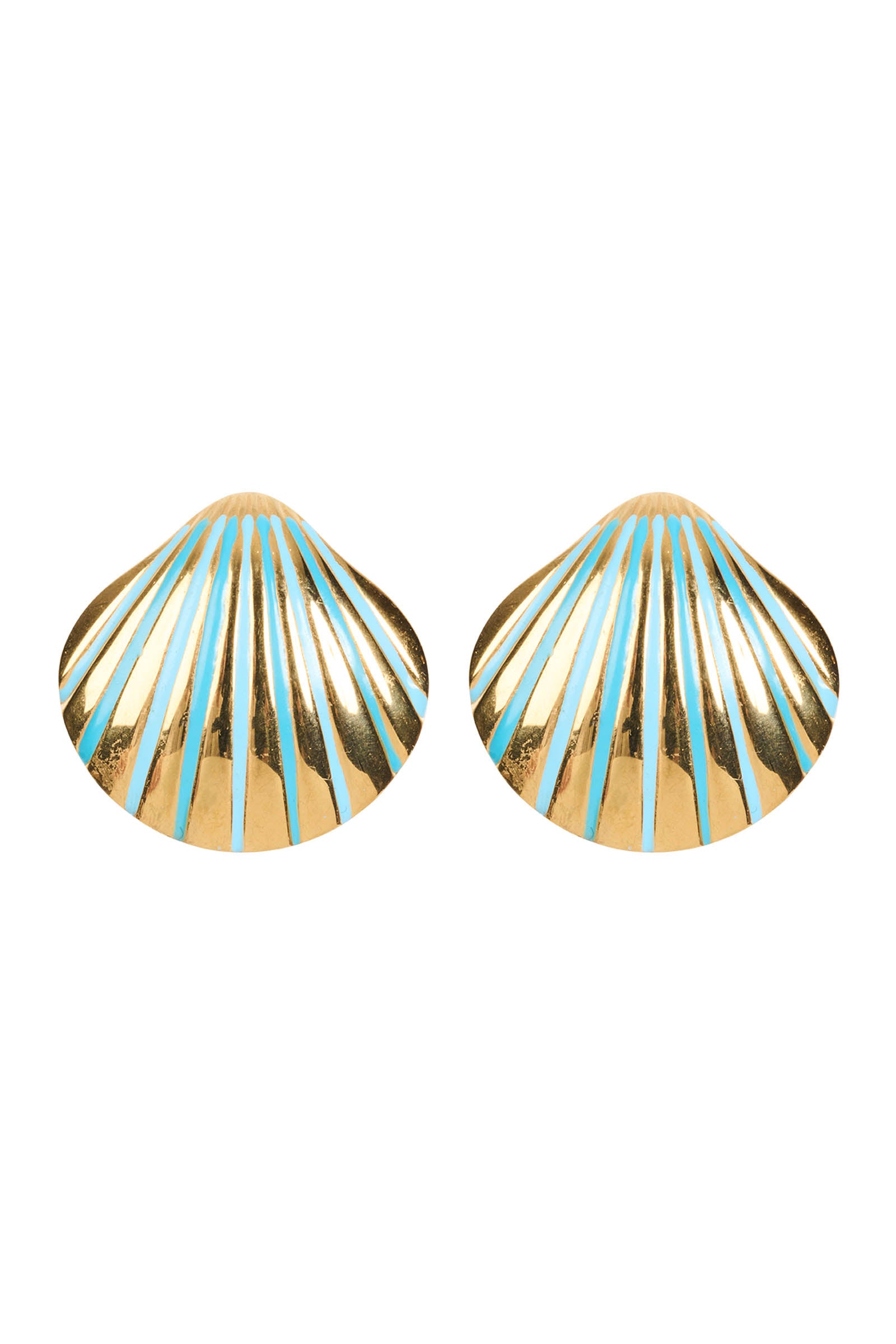 Channel ocean blues with the Brasilia Blue Earring in Shell - a small shell design washed in golden tones, finished with turquoise accents. Subtle but striking.