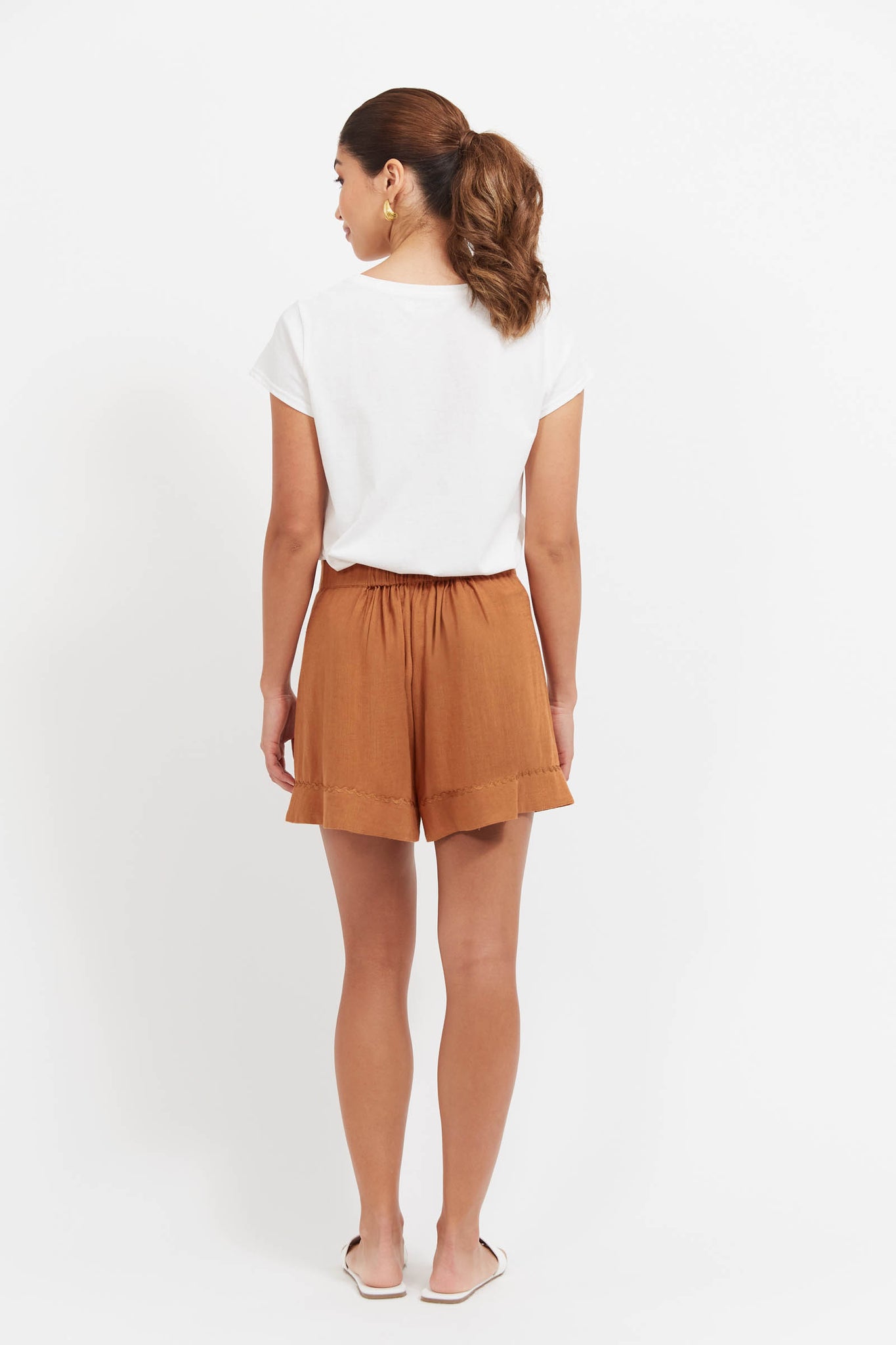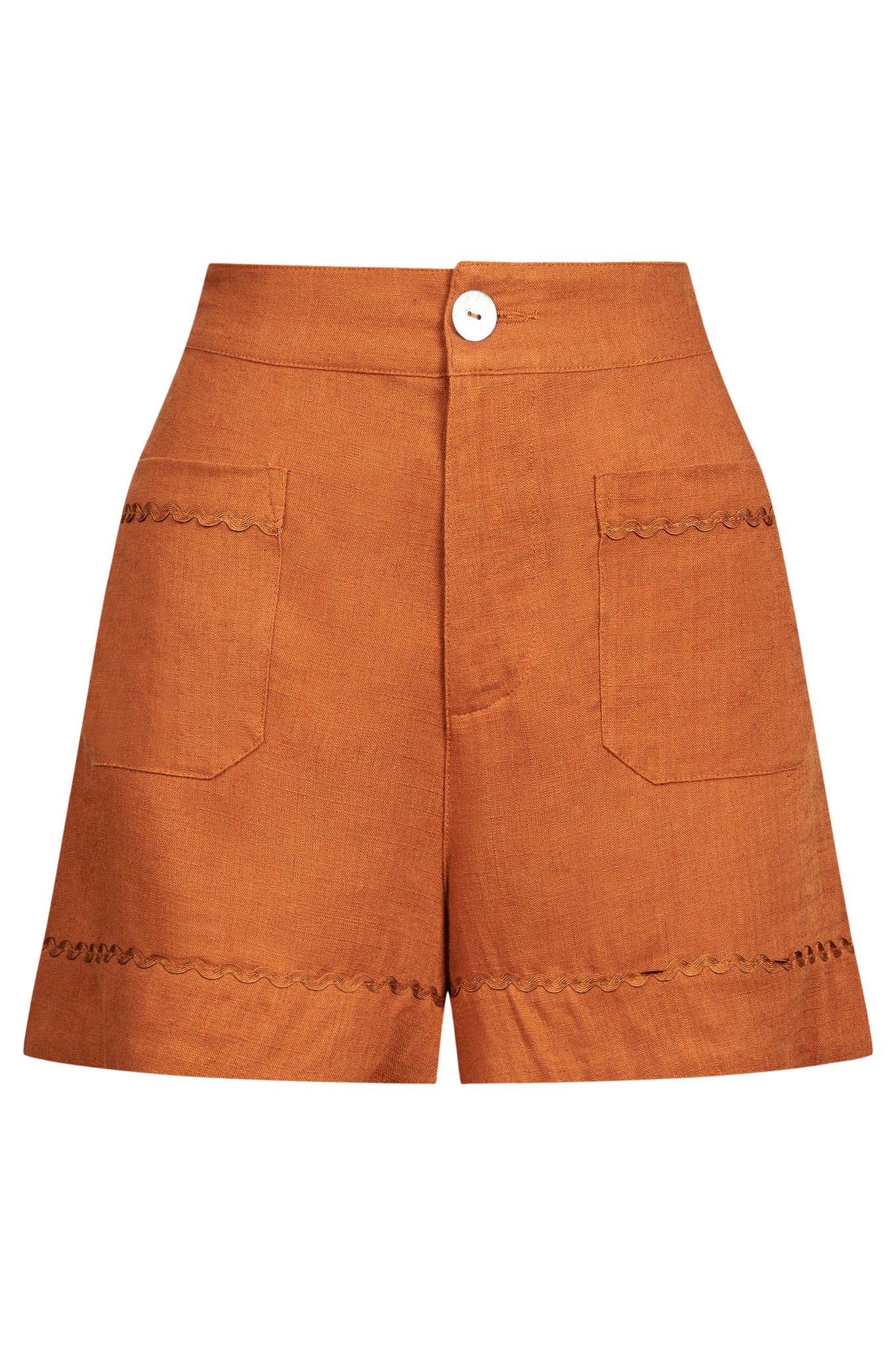 Meet your new favourite summer short. The Haiti Short blends comfort and charm, boasting a flattering high-waisted fit, A-line shape, and mid-thigh length that offers just the right amount of coverage. An elasticated back waistband adds comfort, while front patch pockets trimmed with ric-rac bring a playful, feminine finish.