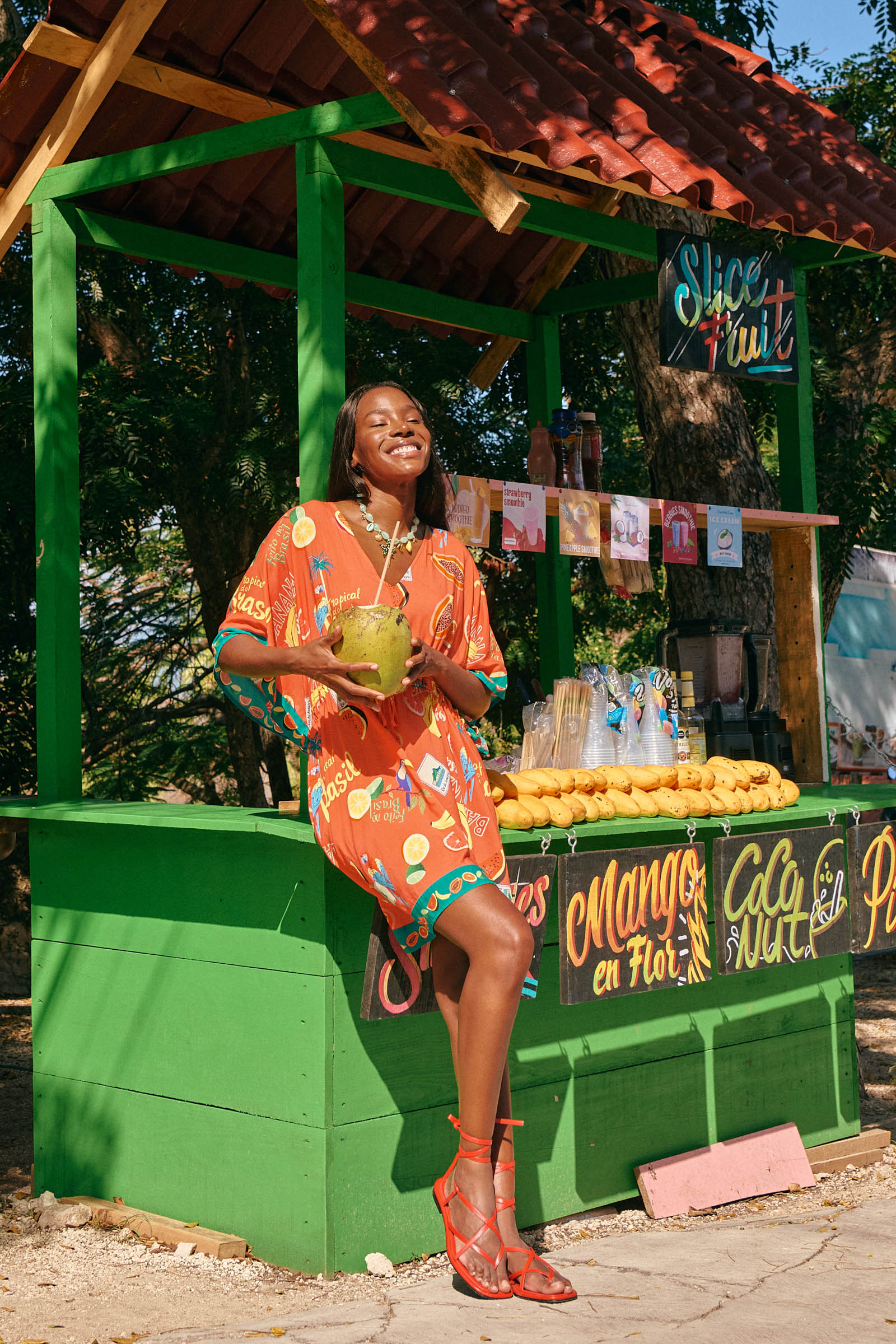 A bold contrast border at the sleeves and hem adds a playful finish, making it an ideal throw-on piece. Pop it over swimwear or pair with strappy sandals for your next summer lunch.