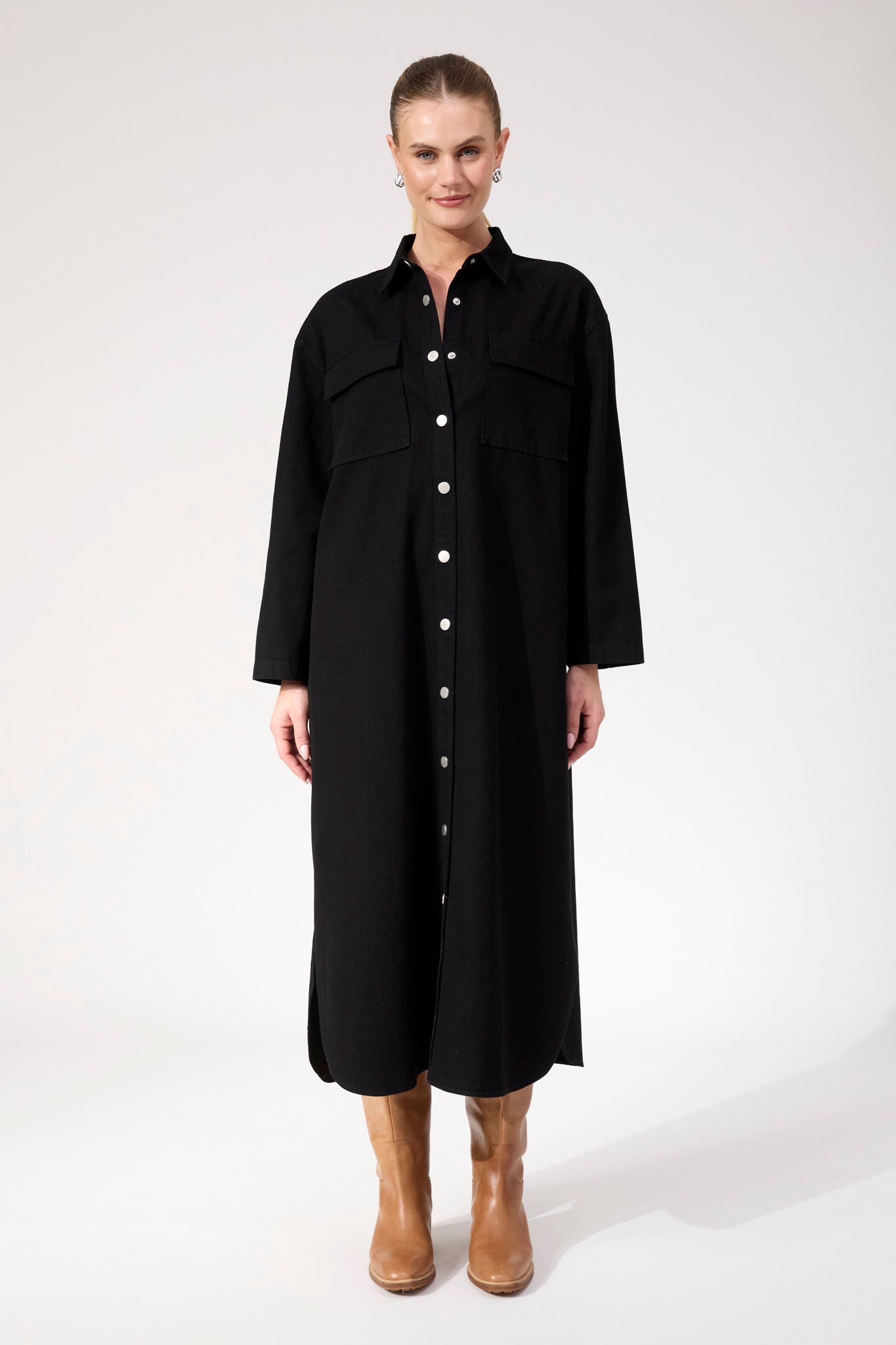 A denim dress that does it all. The Denver Denim Shirt Dress is designed to be worn your way - belted for shape, loose for ease, or styled open as a lightweight jacket. With classic shirting details and a relaxed silhouette, it's a go-to piece that works across seasons.