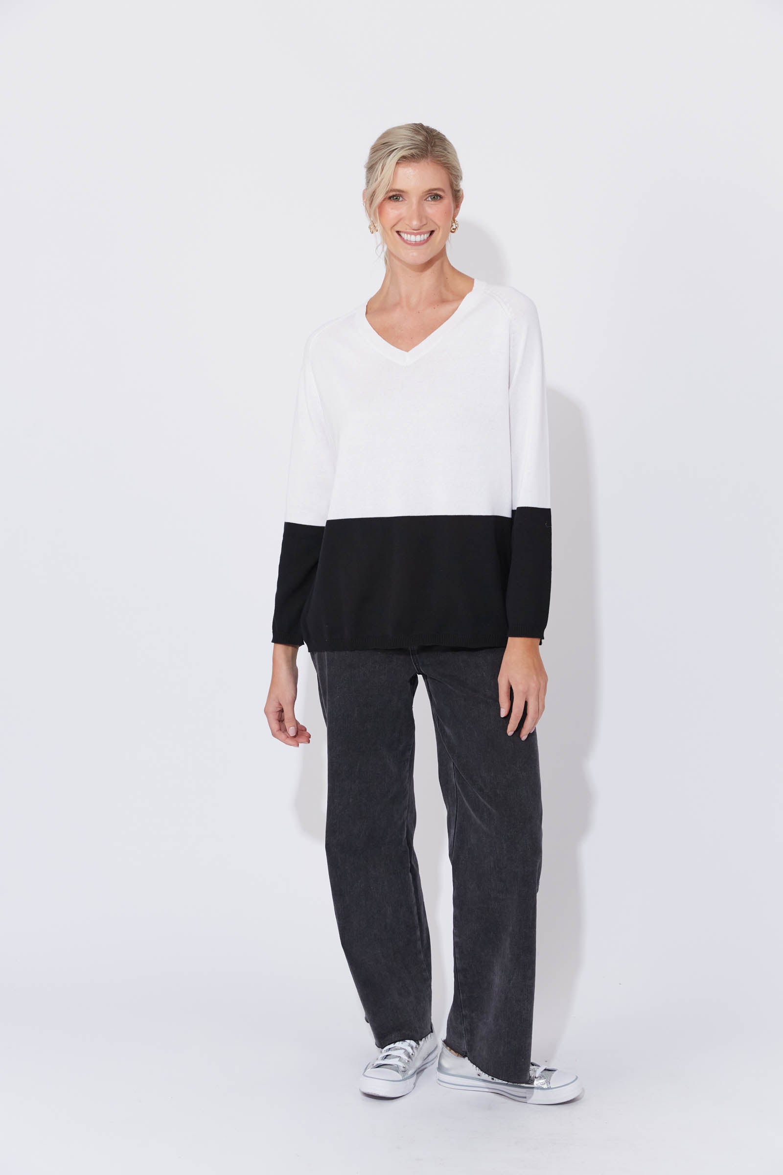 Studio model is a size 8-10 and is wearing a size S/M.