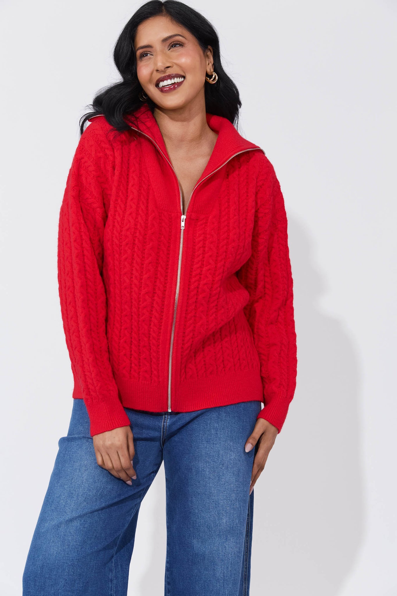 On days when the forecast leaves you guessing between a jacket and a cardigan, the Cadiz Zip Jumper is the perfect solution. This cosy cable knit jumper is crafted from an ultra-soft knit weave and designed to keep you comfortable as temperatures dip. With a wide collar and full zipper closure, it's ideal for layering over everything from casual tees to your favourite dresses.