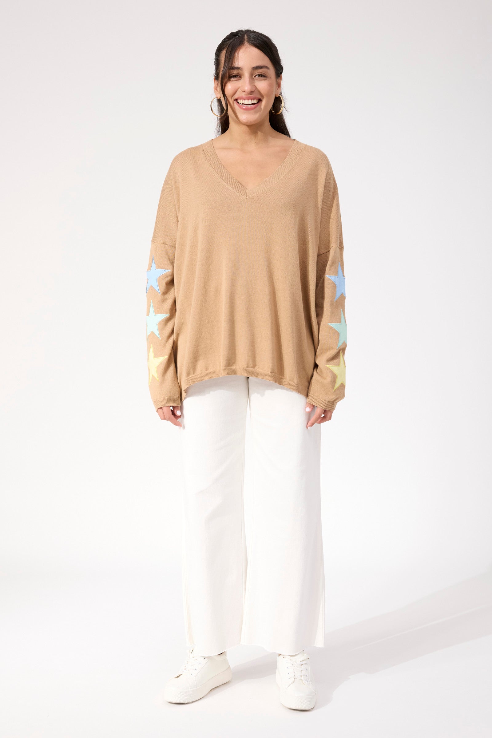 Vermont Star V Neck Jumper - Tan