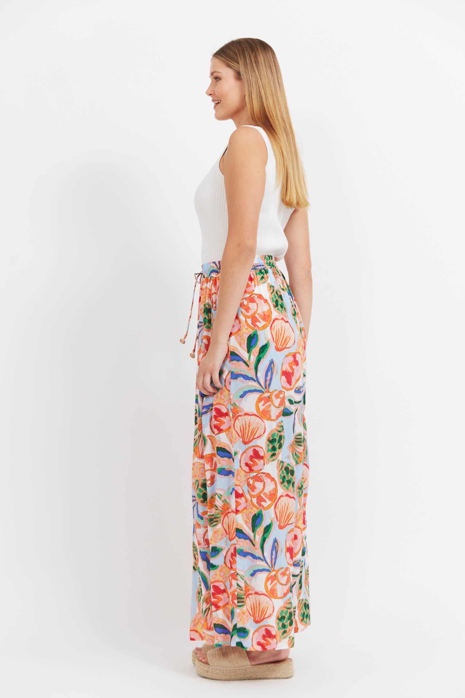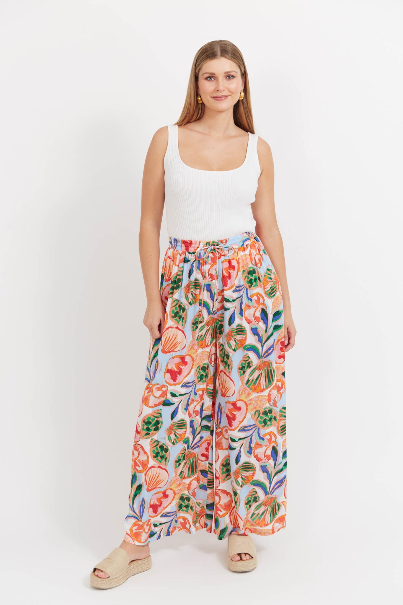 Easy going style with a coastal twist. The Baja Pant boasts a wide palazzo-leg silhouette that flows effortlessly with every step. Featuring an encased tie waist, adorned with delicate shell-inspired charms - a nod to Haven's love for all things coastal. This style is fully lined.