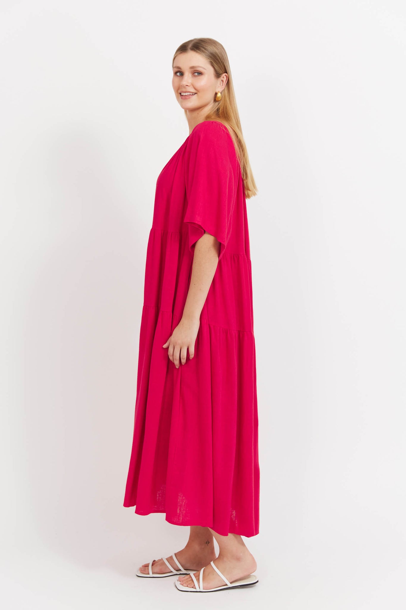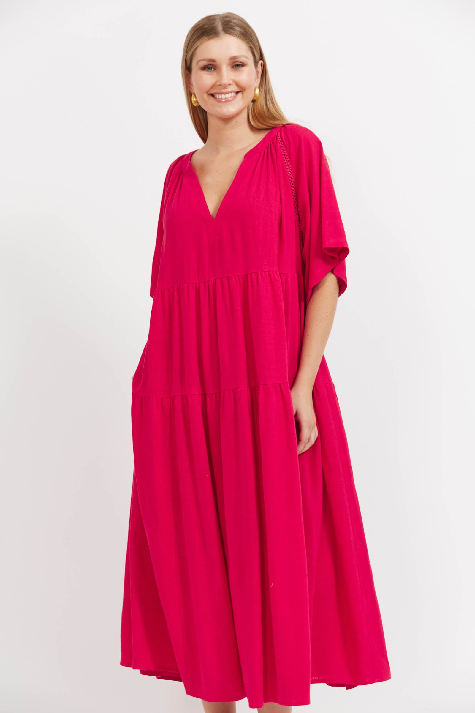 Light and floaty in a breathable linen blend, the Jardin Tiered Maxi Dress features a flattering V neckline, short flutter sleeves with lace-trim inserts, and generously tiered panels for volume and movement. Designed in a relaxed, oversized fit with internal side pockets, it's the kind of throw-on dress you'll reach for all season long.