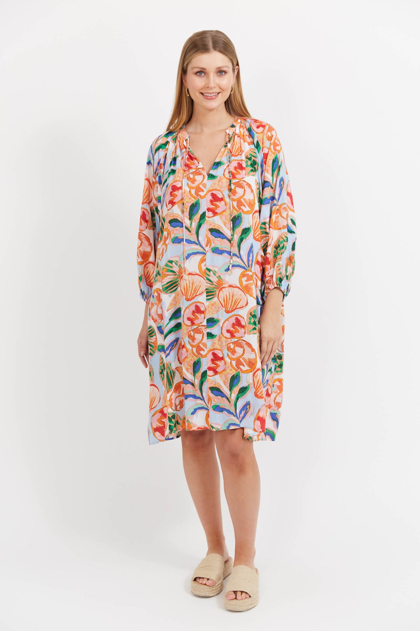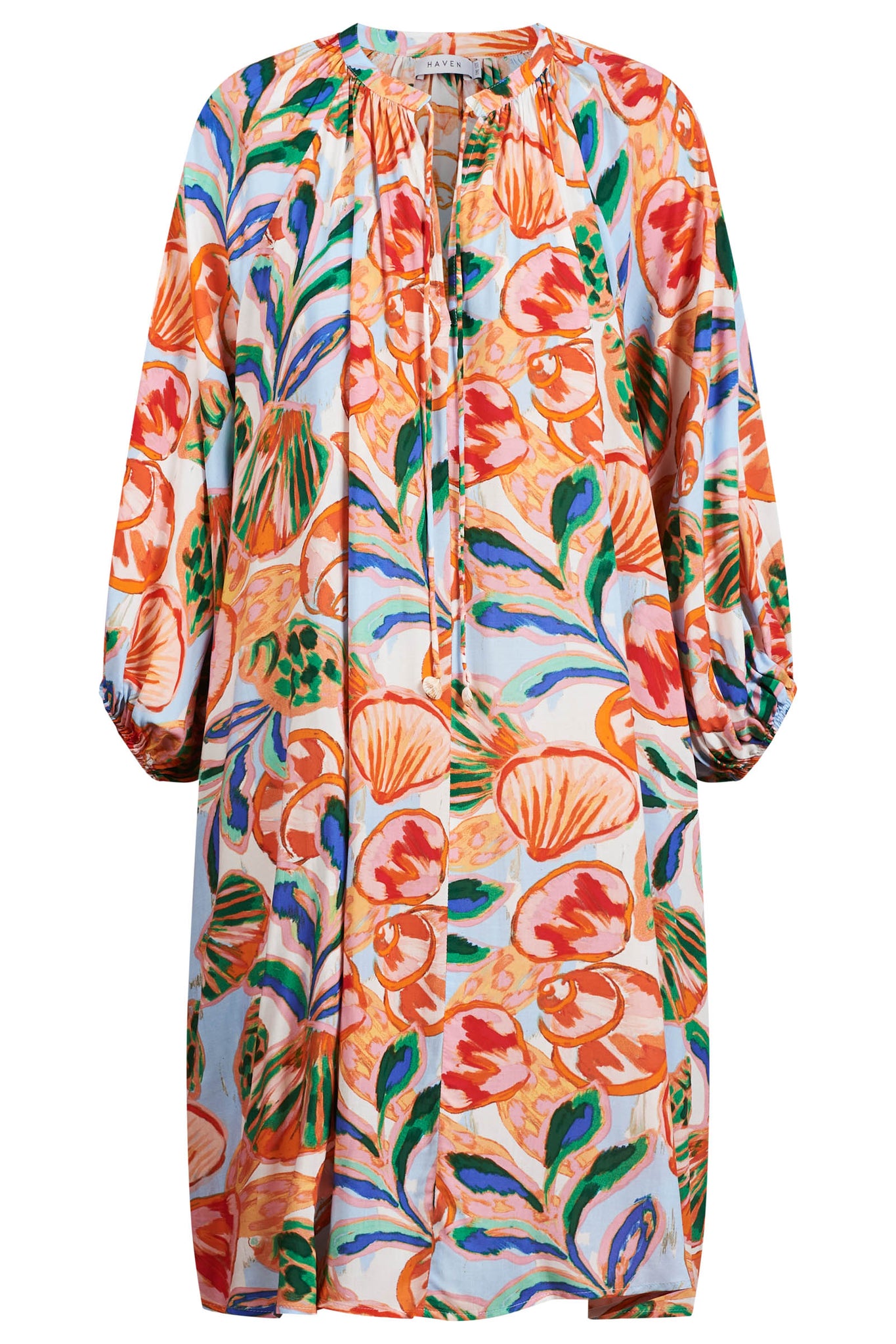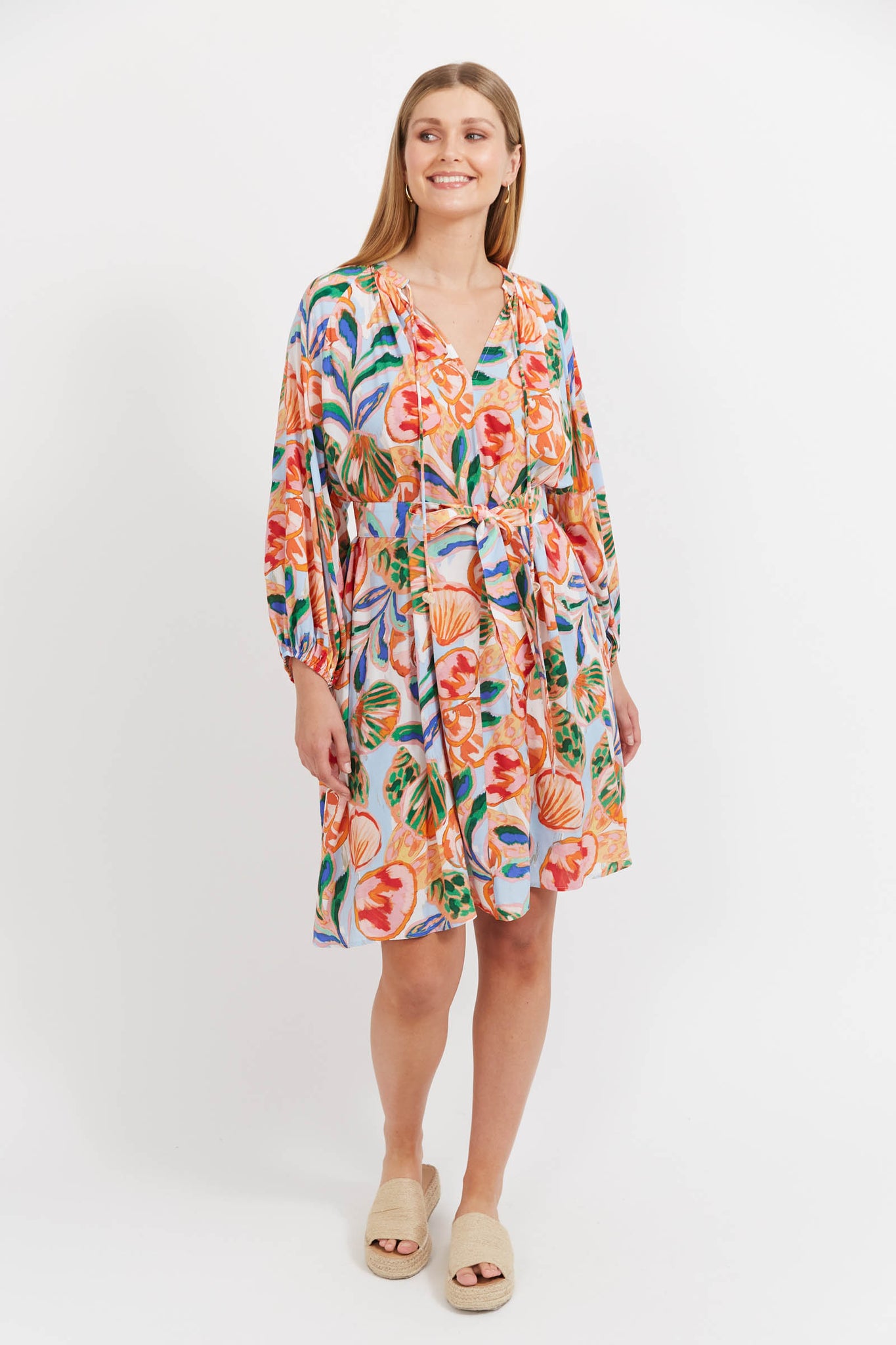 The Baja Relaxed Dress is a warm-weather go-to. Featuring internal side pockets and a breezy V-shaped neckline with front ties, finished in delicate shell charms. Its soft, floaty shape and long sleeves offer sun coverage, while still being light weight. Use the matching fabric belt to cinch the waist, or wear without to have the dress flow freely over your swimsuit and sandals.
