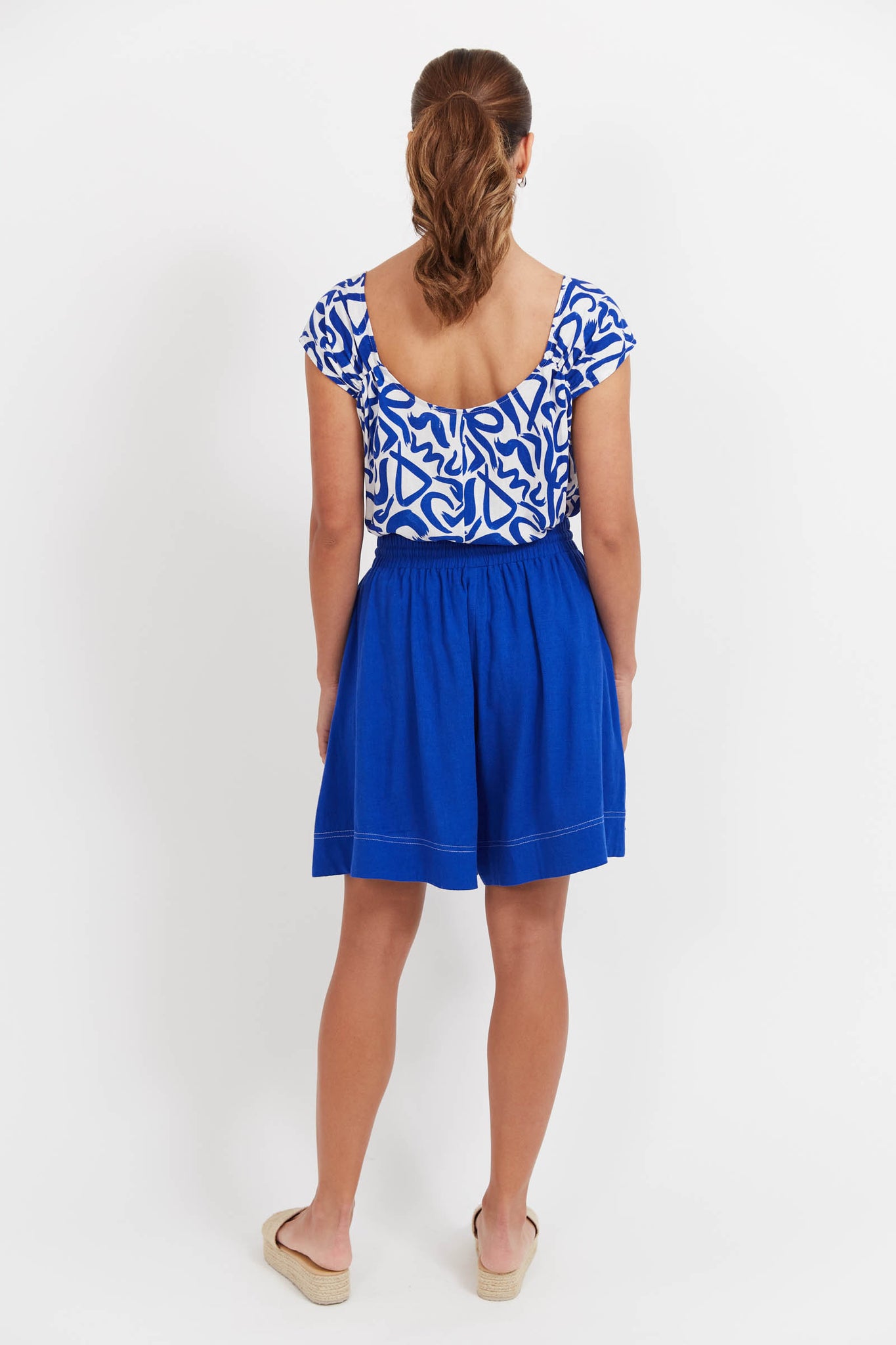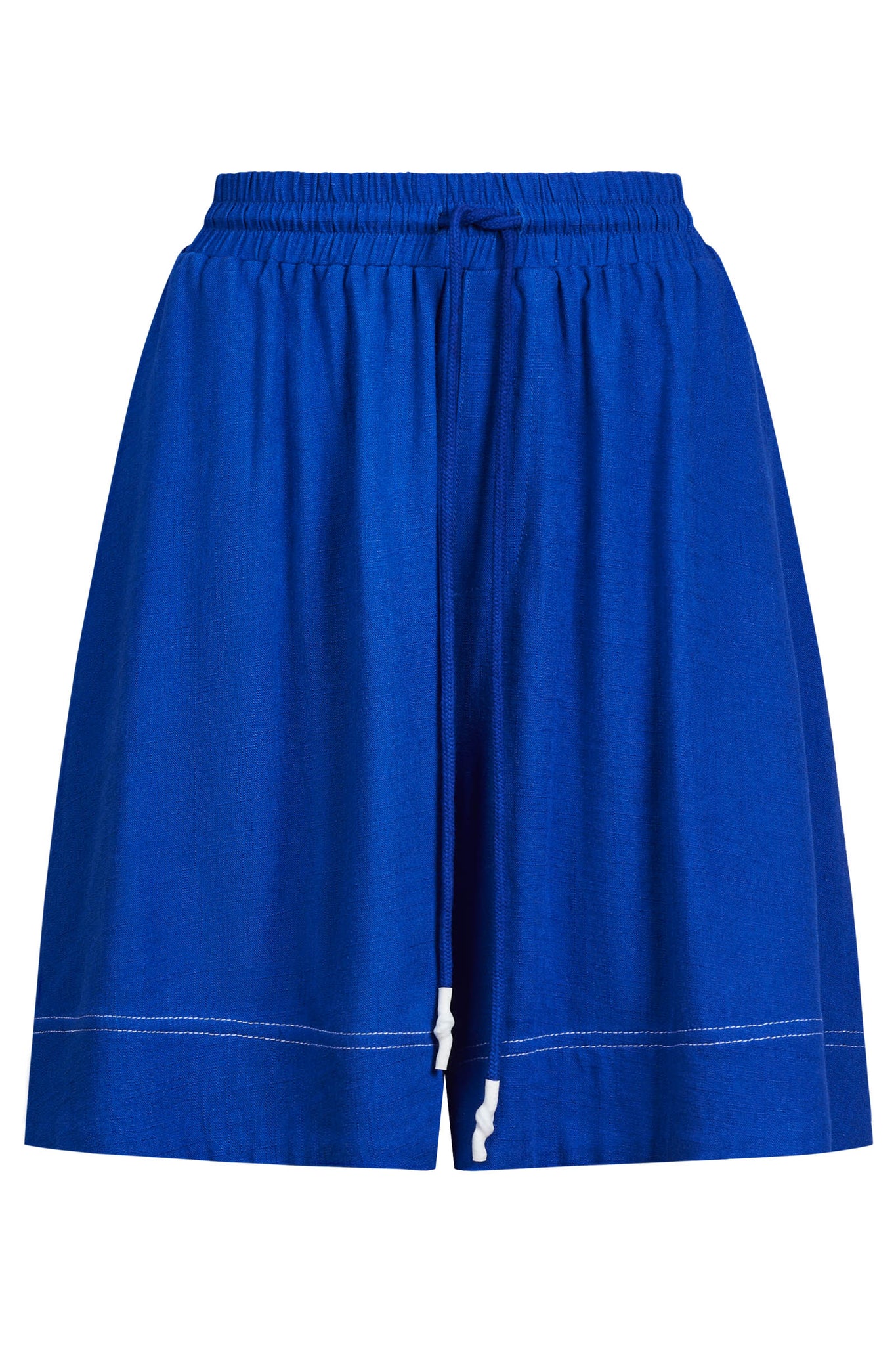 Meet your new summer go-to short. Featuring a flattering high-rise fit, elasticated encased tie waist, and a wide A-line leg. Crafted from a breathable linen blend, it features contrast topstitching for a refined finish.