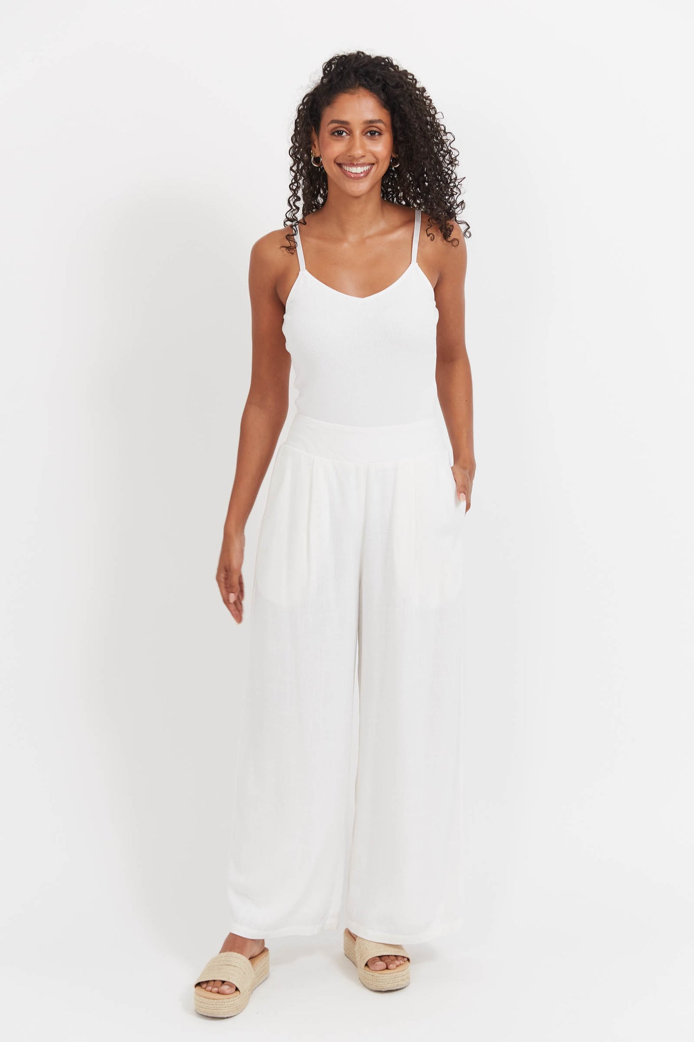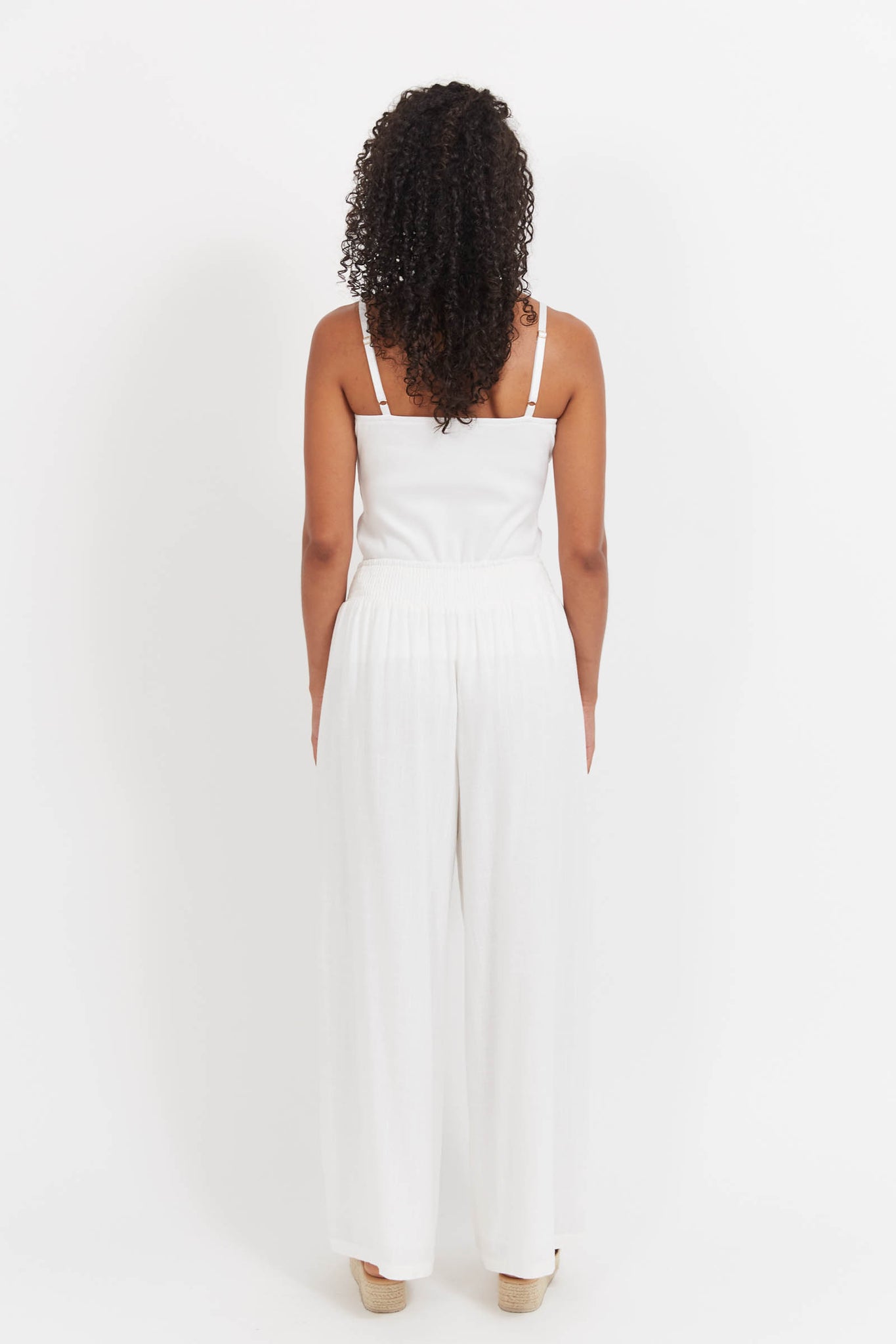 The Jardin Pant is crafted from a breathable linen blend and features a relaxed leg with soft front pleats for a flattering drape. A flat front waistband keeps the look clean, while the elasticated back ensures comfort throughout the day. Designed to sit full length or 7/8 on taller heights, it's a timeless, wear-anywhere style with a relaxed fit and practical side pockets.