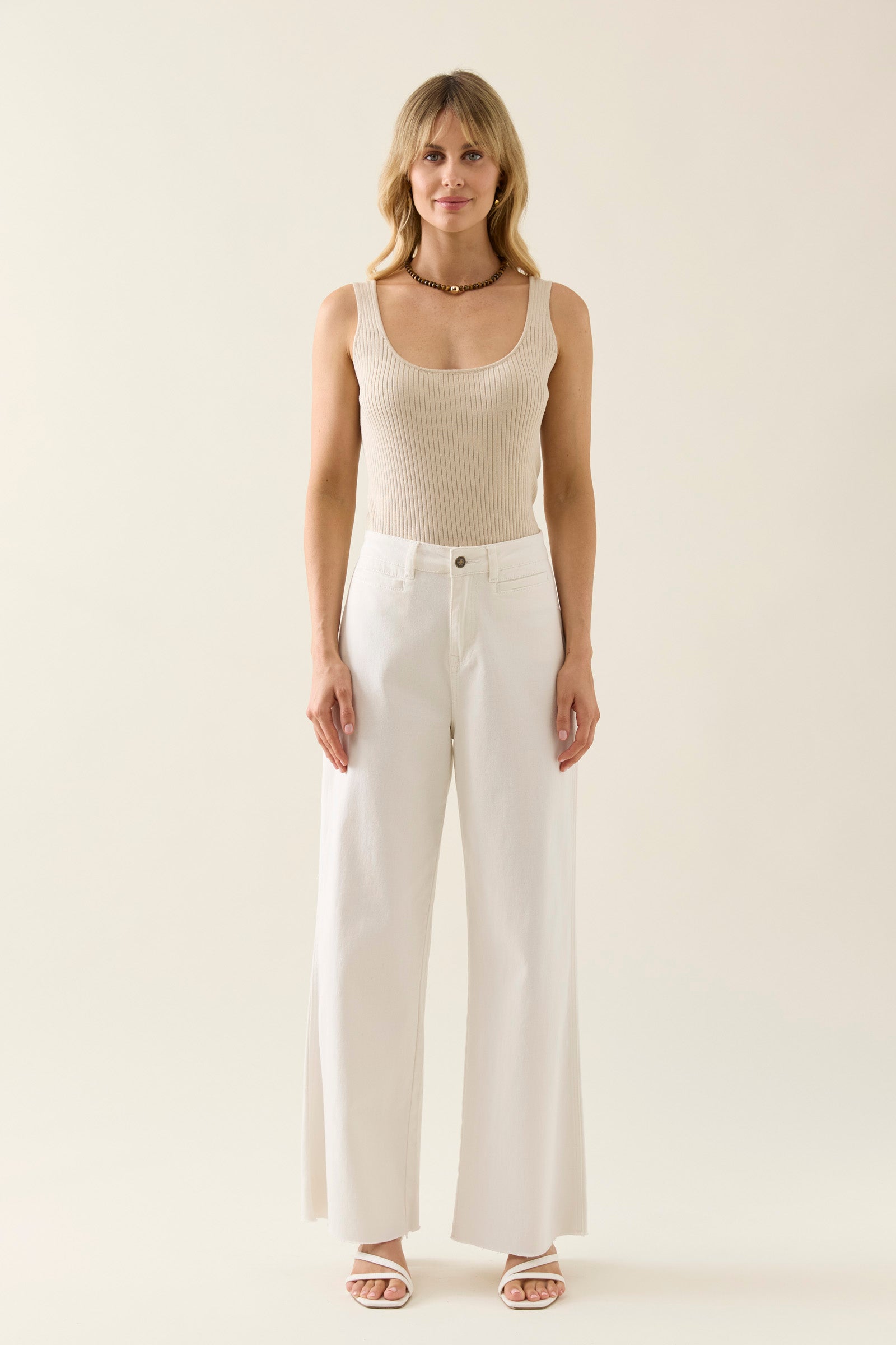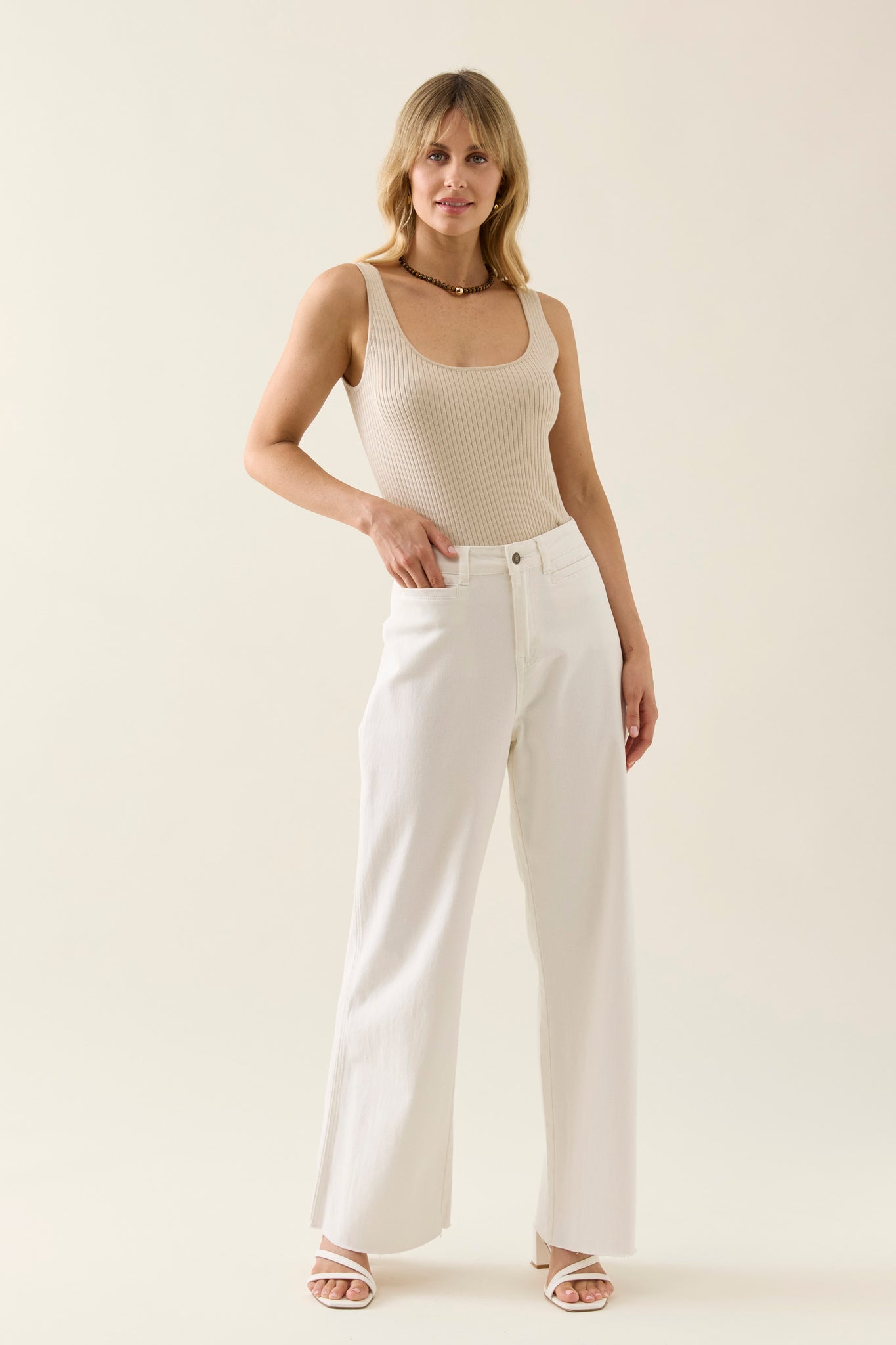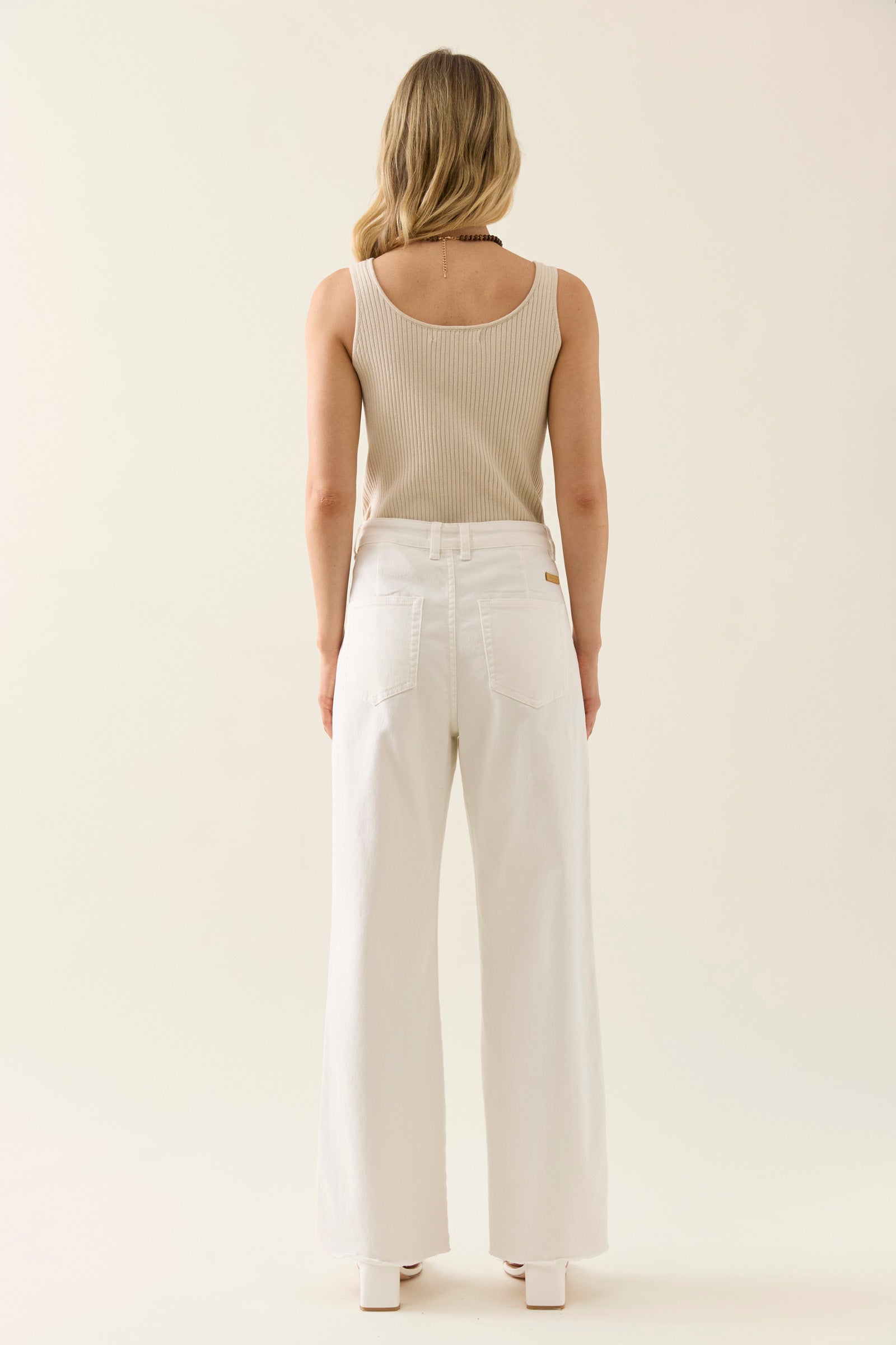 Say hello to your new favourite denim jeans! The Tate Denim is guaranteed to make an impression - with a classic wide-leg silhouette and a mid-rise fit, these denim jeans provide an effortless look that will complement any outfit. It features a button and zip closure with pockets and a raw edge ready for any occasion. Style it with a tank, cape and glam accessories for cocktails with the girls or a soft knit and sneakers while you run errands.