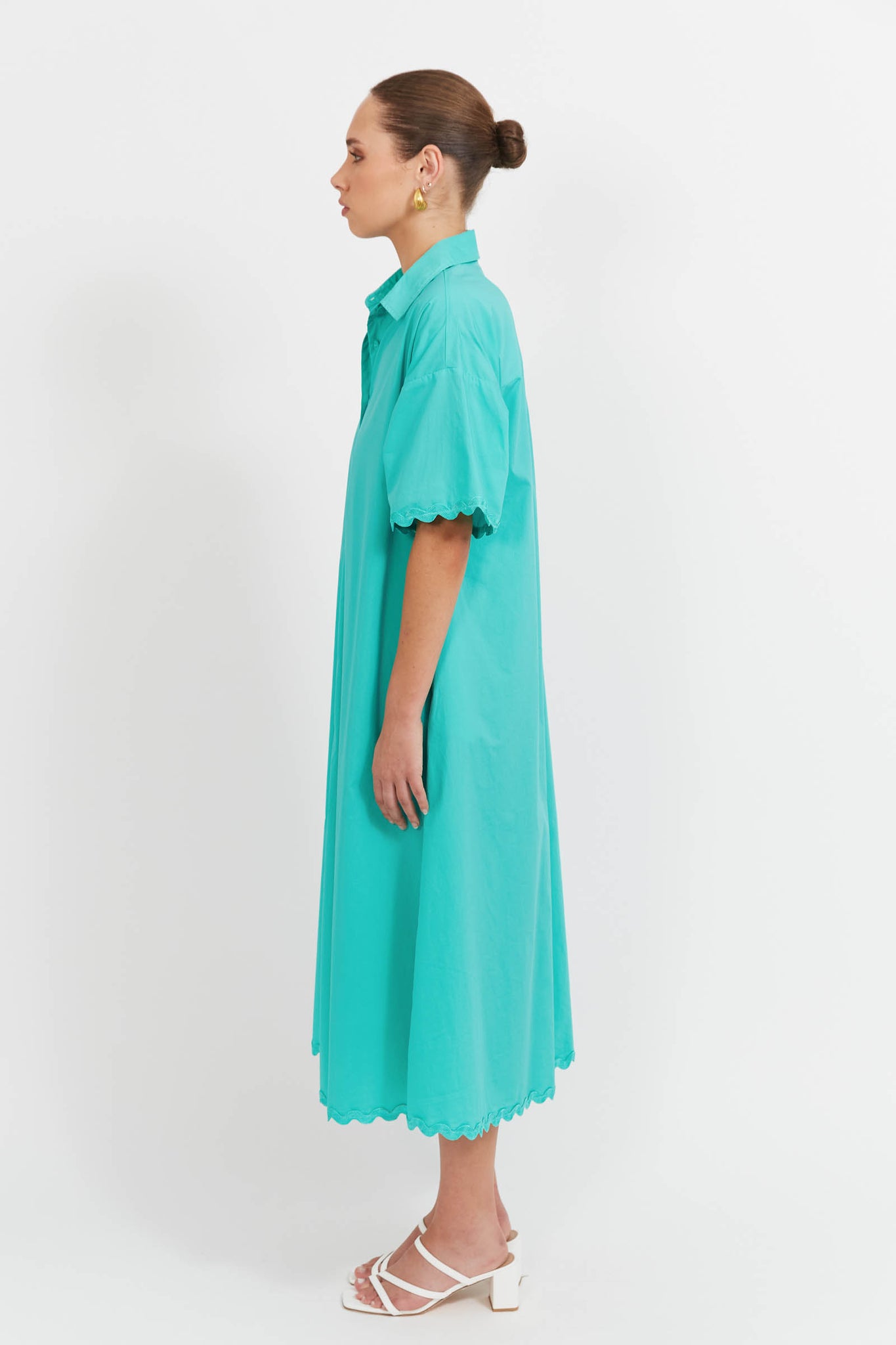 Crisp, playful, and easy to wear. Crafted from 100% cotton, the Brasilia Shirt features a classic collared neckline, button-through front, and wide short sleeves, it's finished with oversized ric-rac trim at the sleeves and hem for a fun, feminine twist. Internal side pockets add function.