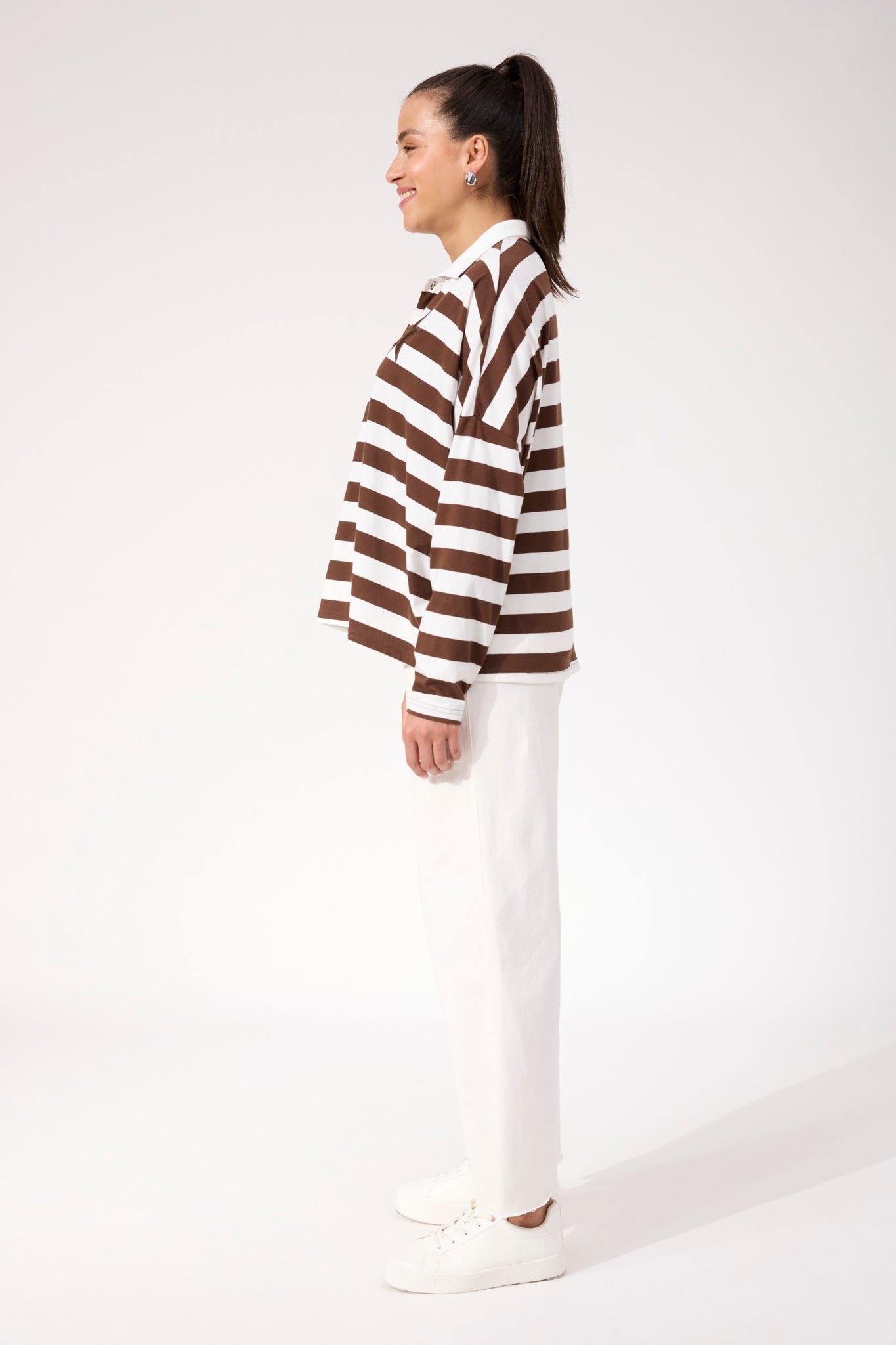 Columbus Stripe Polo Top - Brown