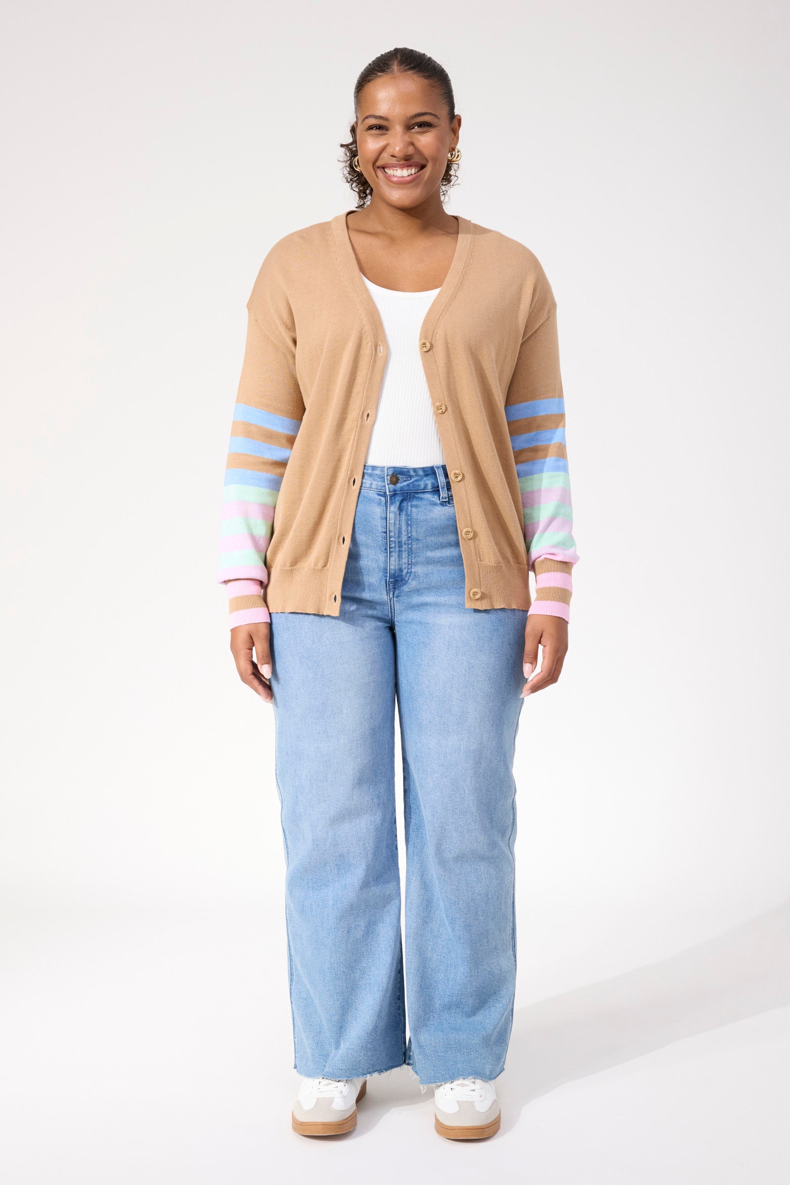 Vermont Stripe Cardigan - Tan