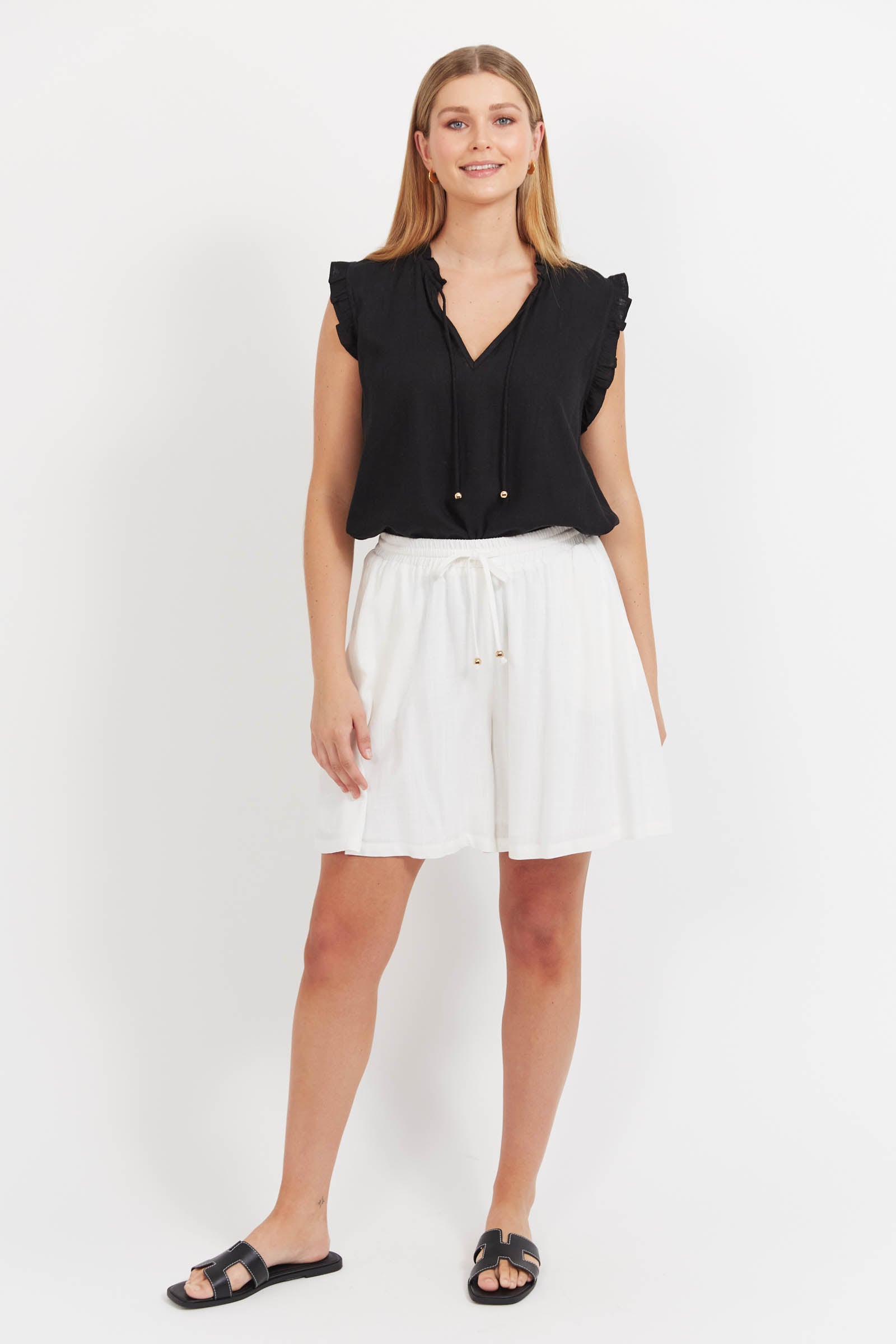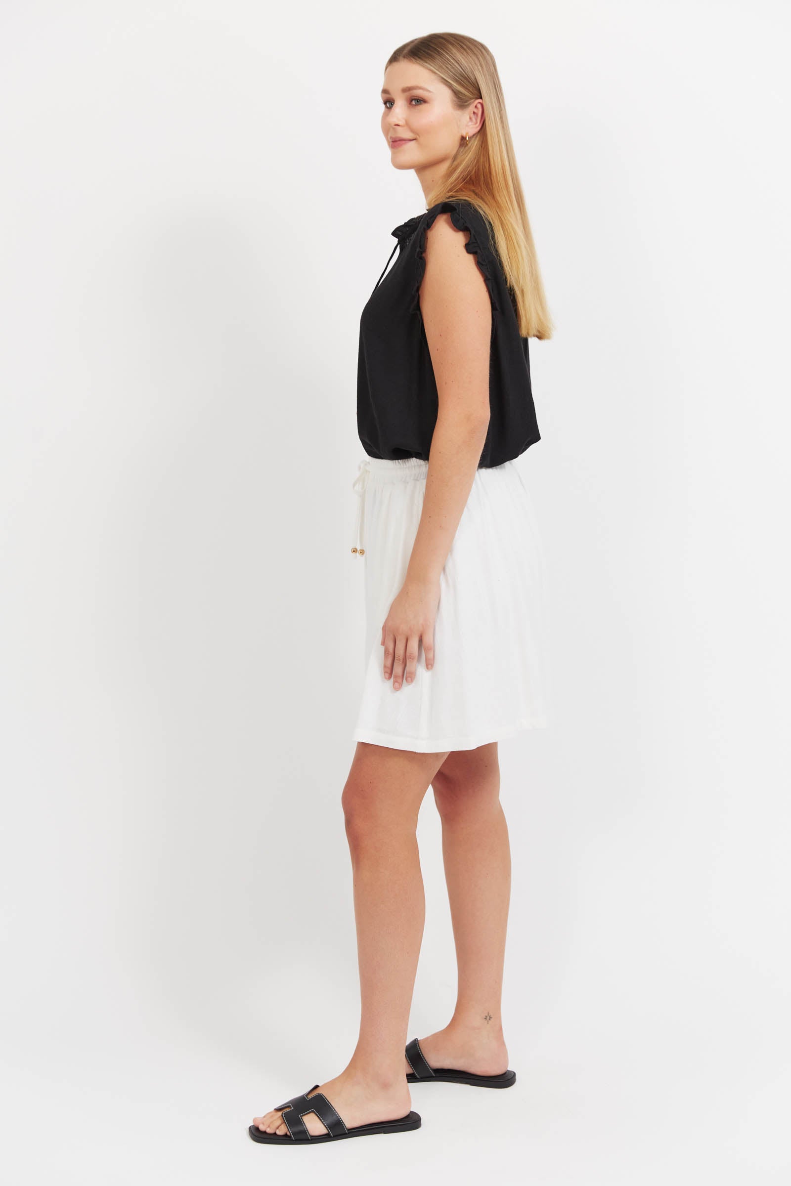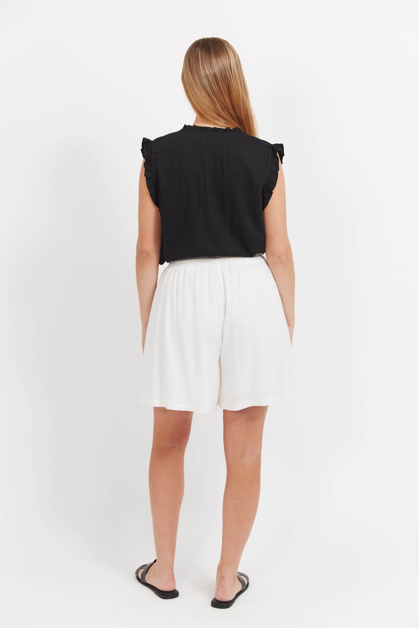 Easy-going and comfortable, with just the right amount of coverage. The Jardin Short is a warm-weather staple, designed in a high-waisted, relaxed A-line shape with a wide-leg silhouette. Made from a breathable linen blend, it features an encased cotton drawstring waist with gold bead detailing and internal side pockets for everyday practicality.