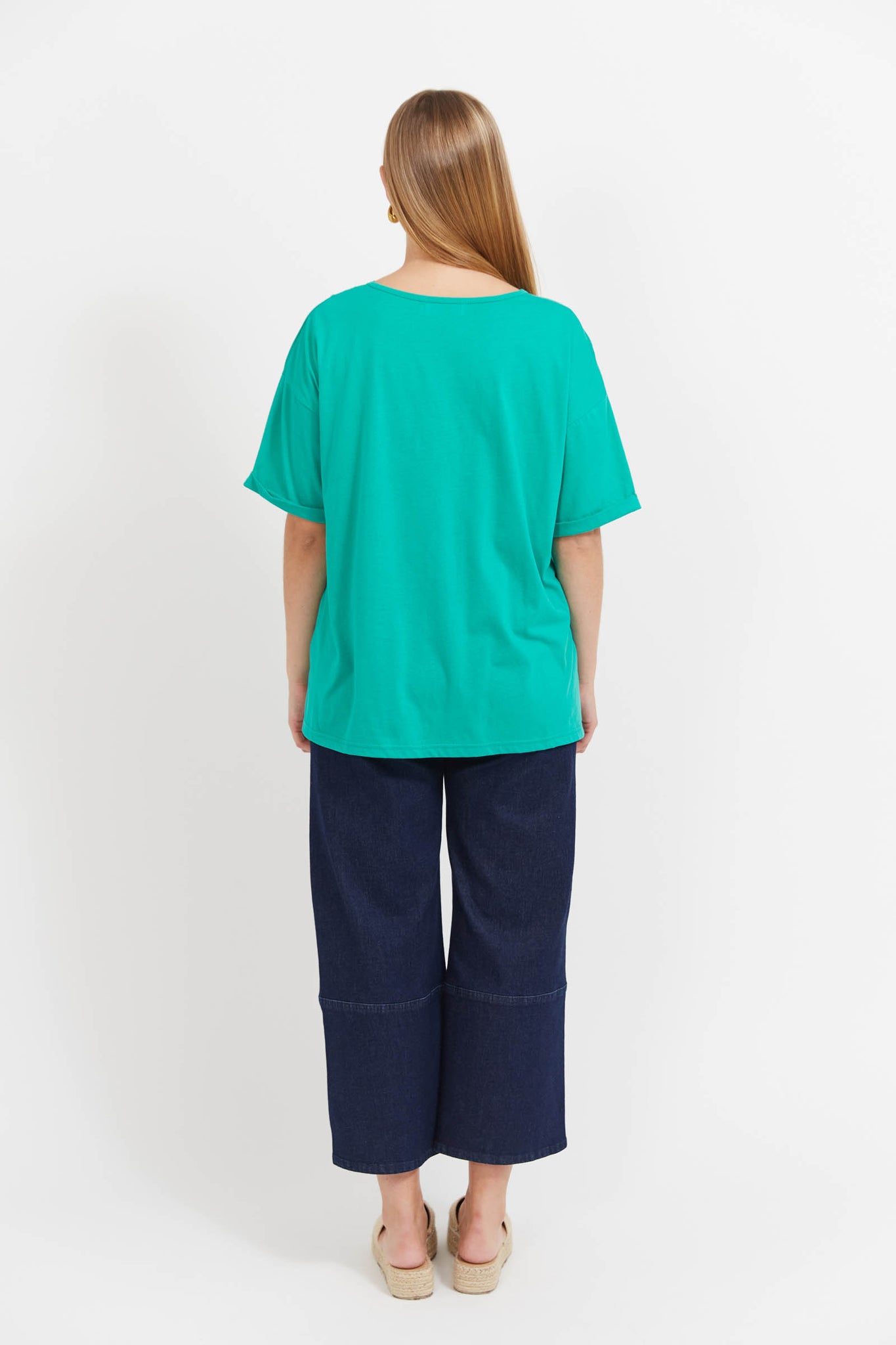 Relaxed, playful, and made for sunny days. The Cabana T-Shirt is crafted from soft 100% cotton in an oversized silhouette, designed for laid-back comfort with a modern edge. It features a relaxed crew neckline, wide short sleeves with cuffed hems, side splits for ease, and a low-hip length for extra coverage.