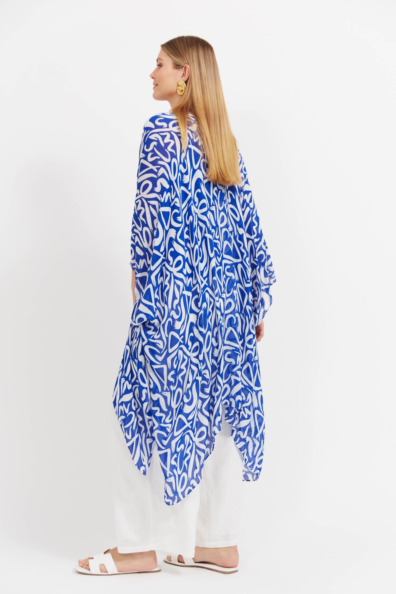 A light layer with a bold touch. The Bahama Cape is your go-to for easy sun coverage - whether thrown over swimwear or styled with everyday pieces. Featuring an open-front design, 3/4 length sleeves, side vents, and a flowing handkerchief hem, it adds movement without the bulk. Crafted in a semi-sheer, summer-ready print, it pairs perfectly with the matching Bahama Swimsuits for a coordinated beach-to-lunch look.