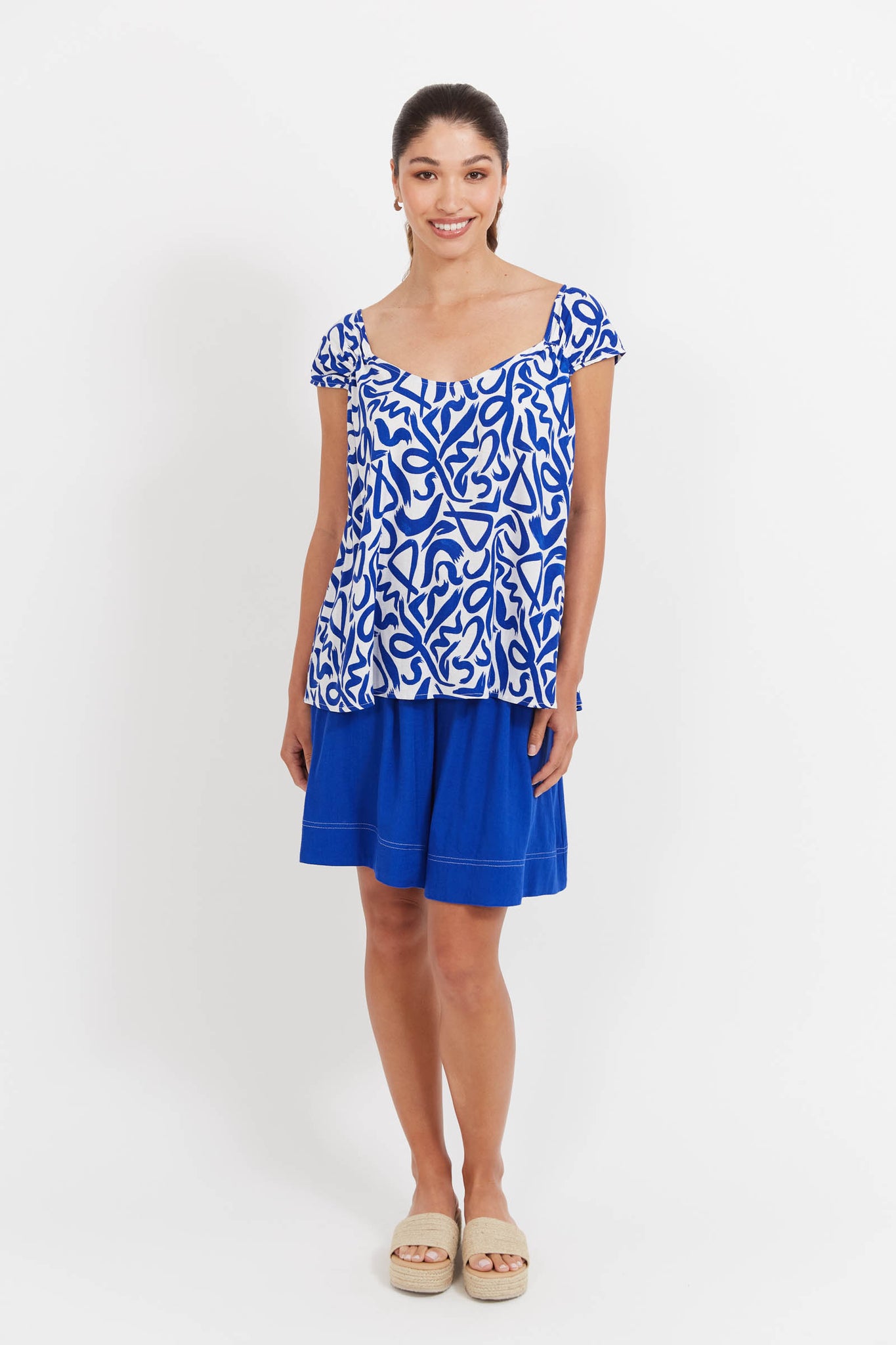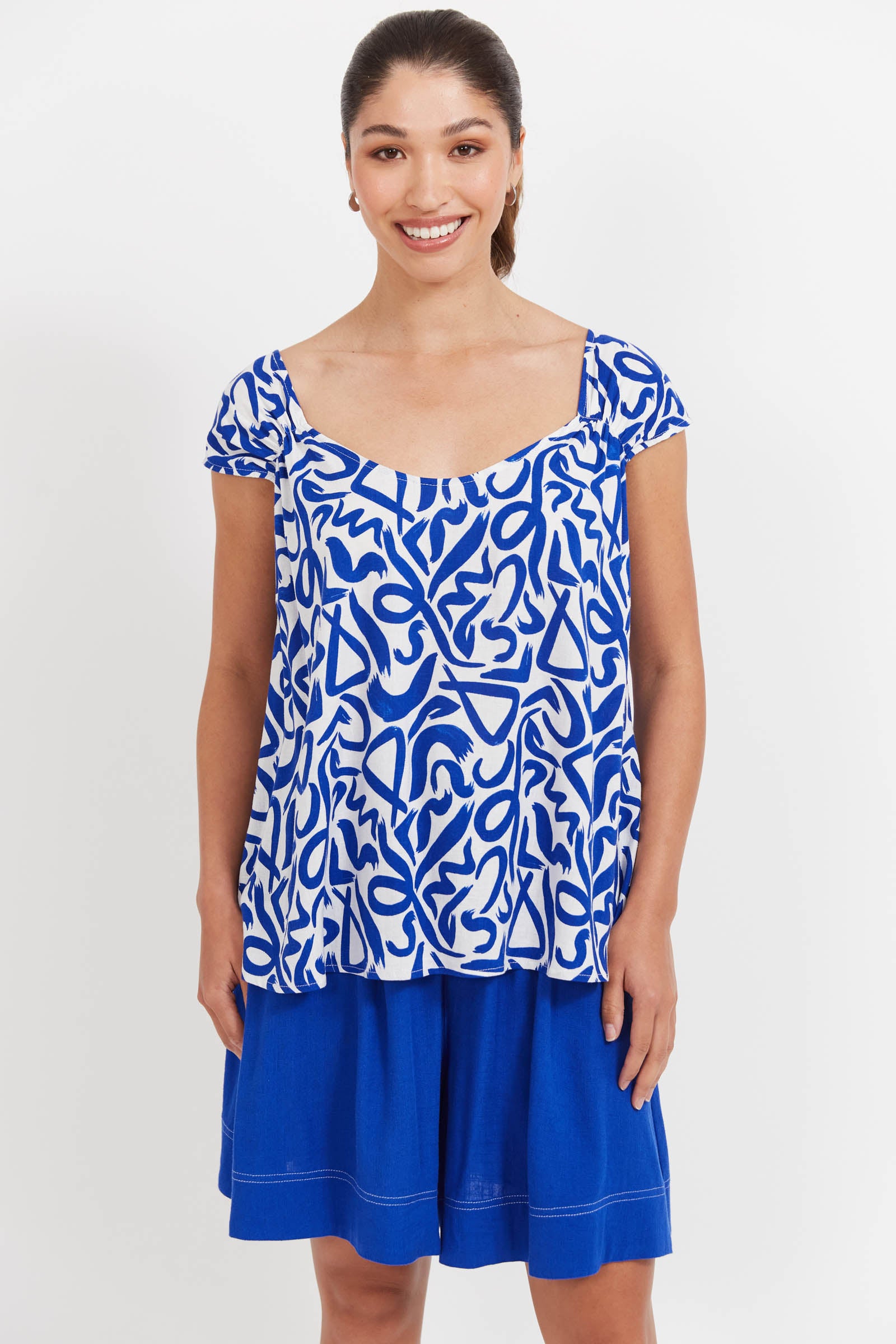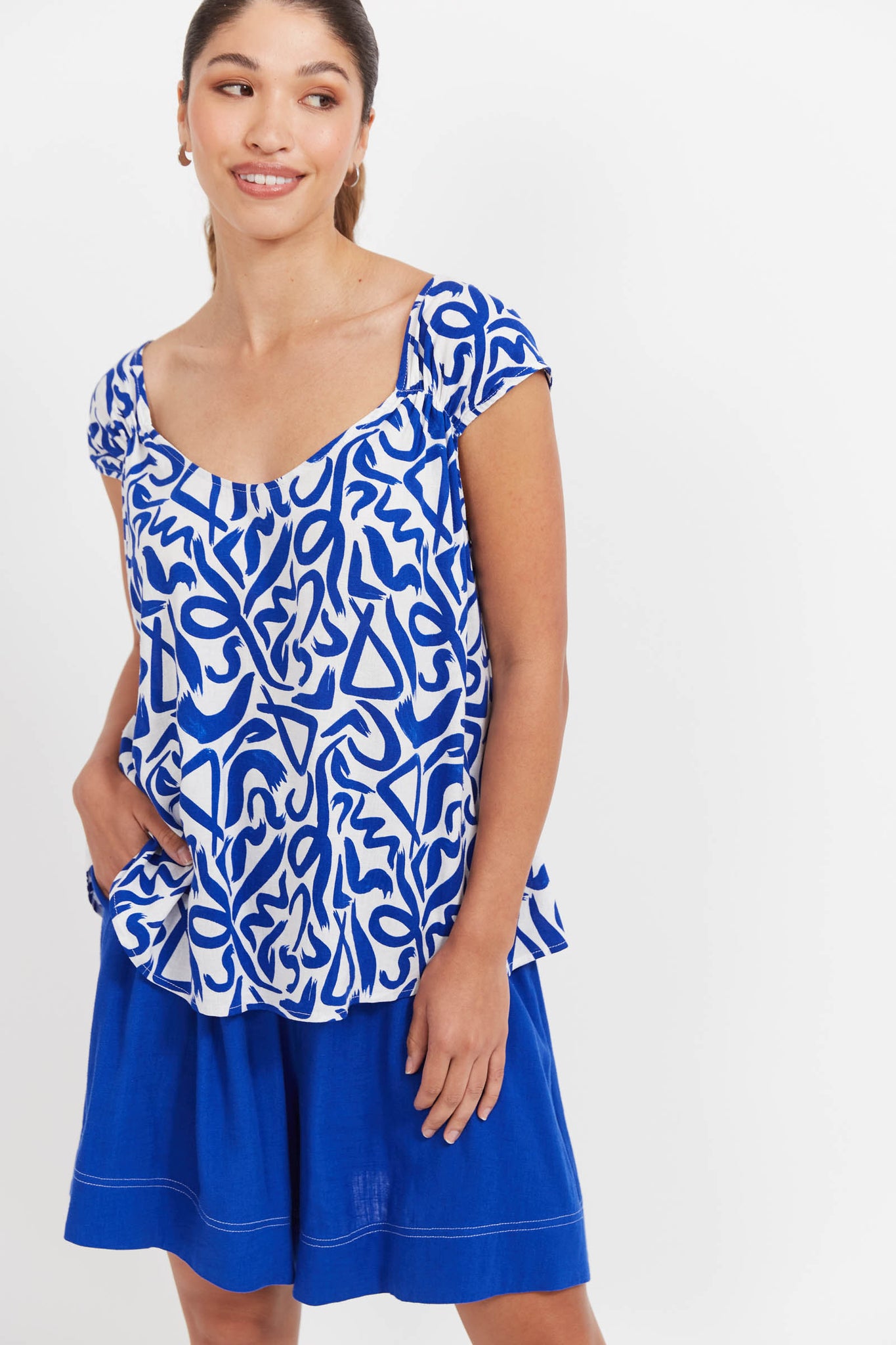 The Bahama Tank is your throw-on-and-go essential, designed with a flattering scoop neckline, extended shoulder sleeves, and soft gathered detailing at the straps. Cut in a loose fit from a breathable linen blend, it falls to the hip for versatile styling.