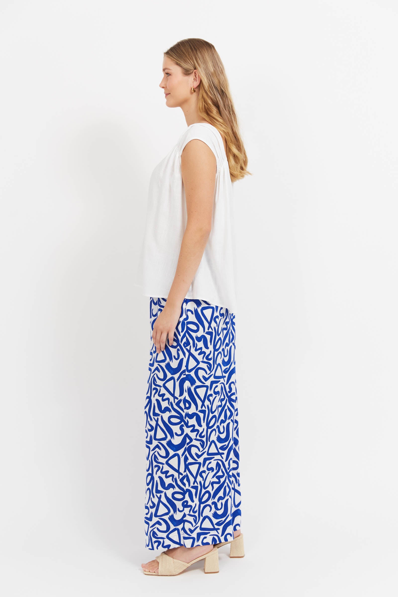 The Bahama Tank is your throw-on-and-go essential, designed with a flattering scoop neckline, extended shoulder sleeves, and soft gathered detailing at the straps. Cut in a loose fit from a breathable linen blend, it falls to the hip for versatile styling.