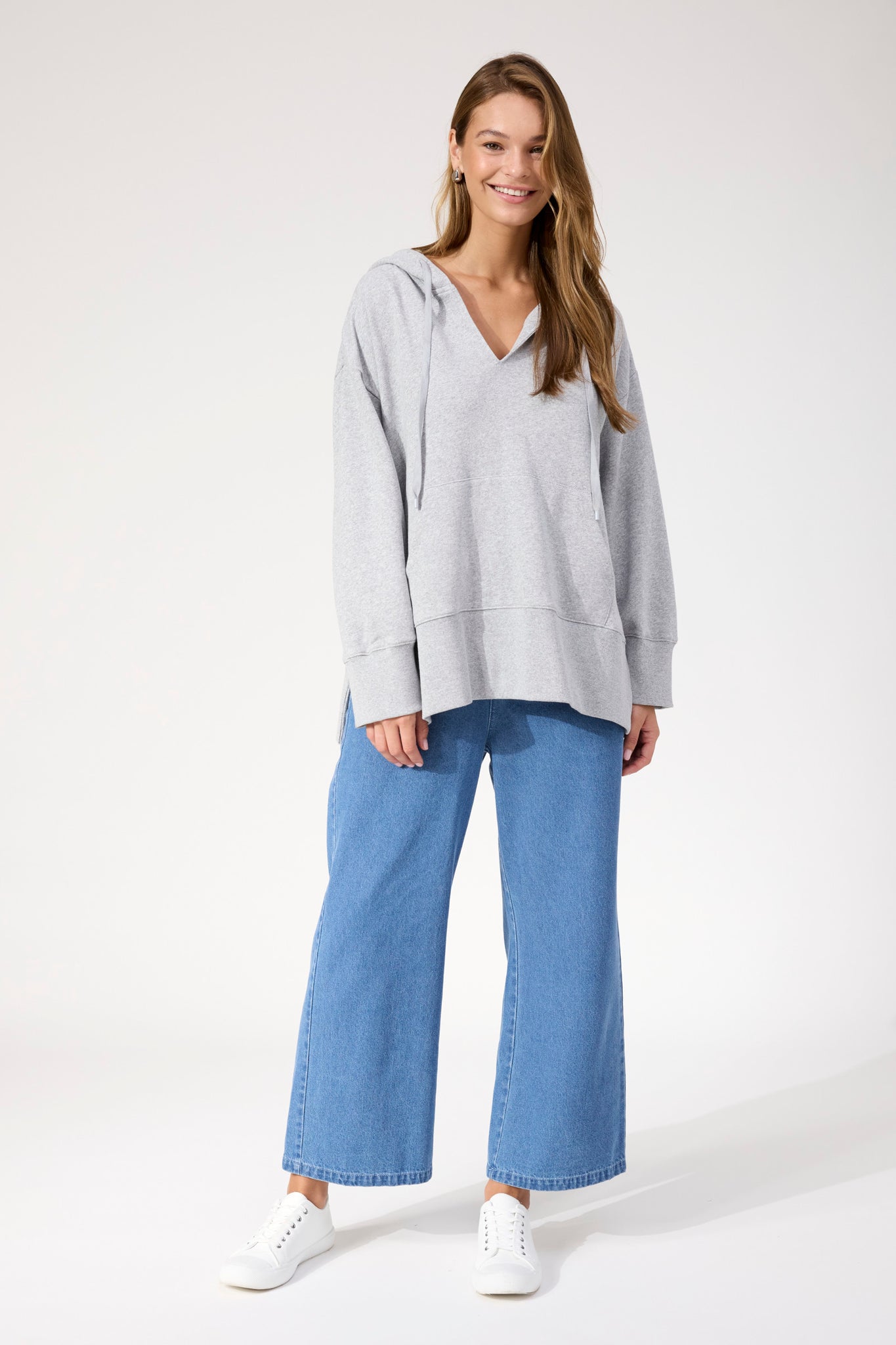 A vintage-inspired hoodie designed for relaxed winter days. The Boston Sweat Hoodie features a deep V-neckline with adjustable ties, wide sleeves and a roomy fit. Finished with a statement hem band and subtle branding, it's both cosy and cool.