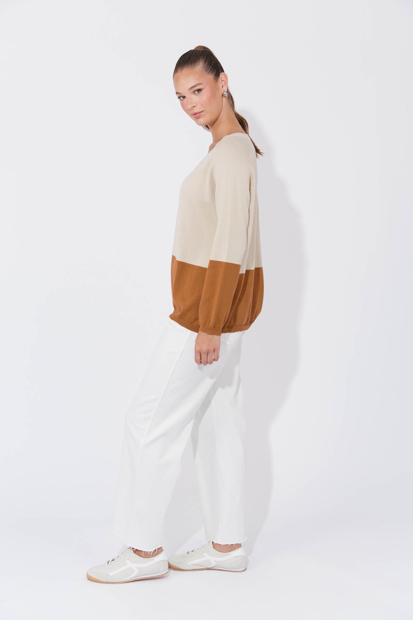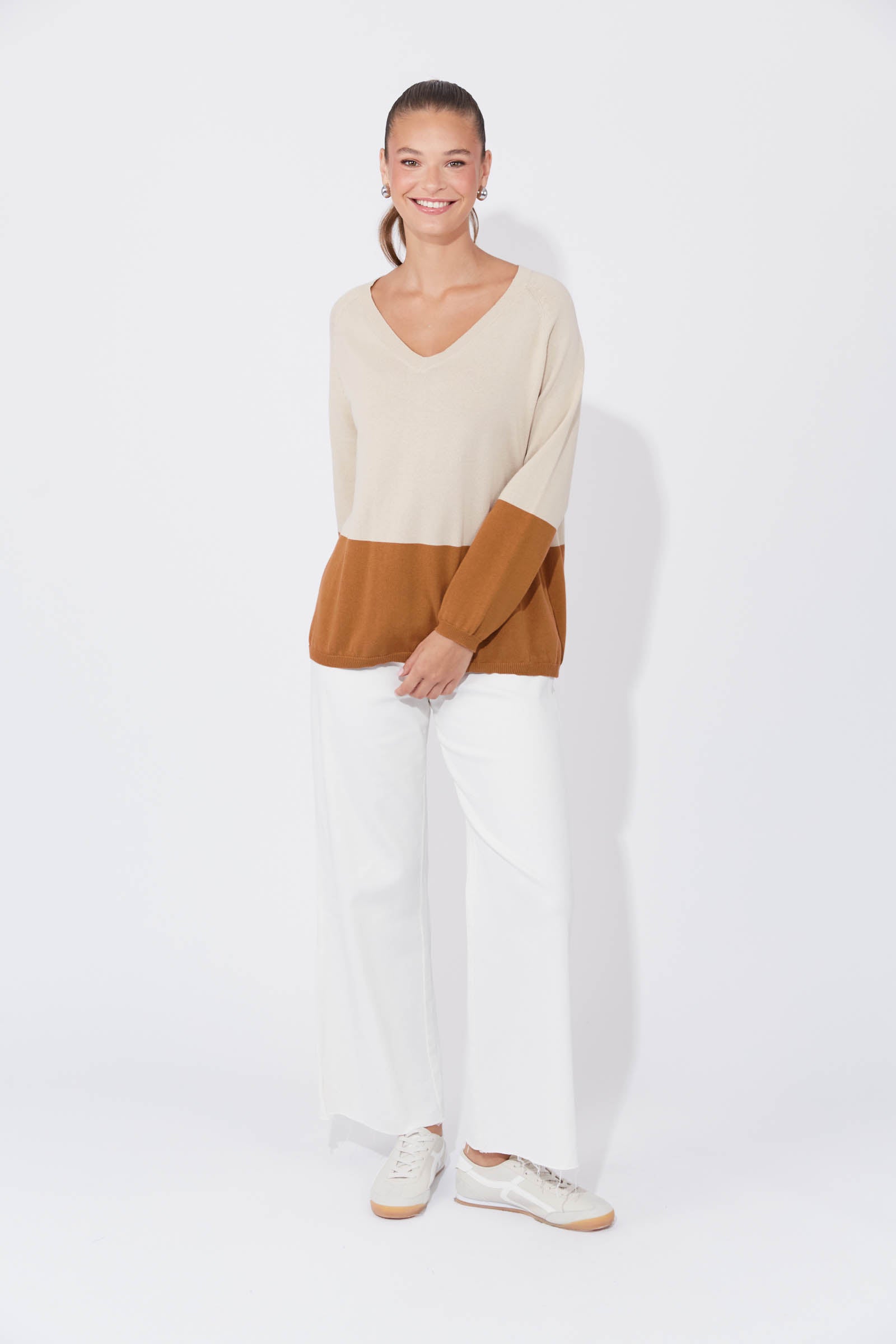 The Casablanca Block Knit combines simplicity with a touch of modern flair. This easygoing boxy sweater is designed with raglan sleeves and a V-neck for a relaxed fit. A bold panel at the hem splits this knit into two contrasting colours, creating a fun and dynamic visual effect. Crafted from a soft and lightweight cotton weave, this knit is designed to be worn all year long, offering the ideal balance of comfort and versatility for every season.