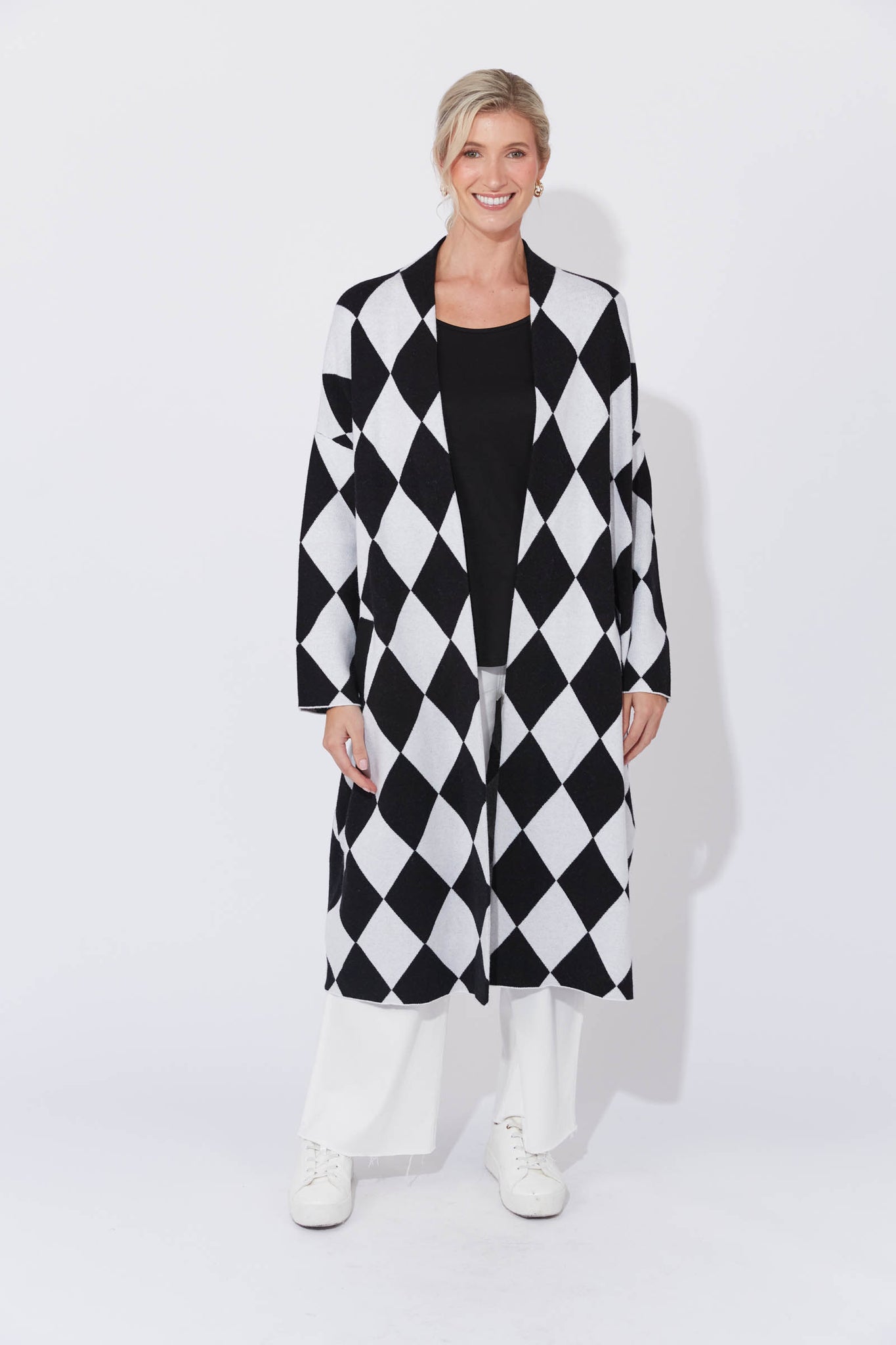 Instantly refresh your knitwear collection with the eye-catching Casablanca Cardigan. With a flowing longline profile and an open edge-to-edge design, this cardigan boasts bold monochromatic checks that will bring a fun, energetic vibe to your wardrobe this season. Cosy and soft, it's guaranteed to brighten your mood all season long! Pair it with a neutral outfit to let this cardigan take centre stage.