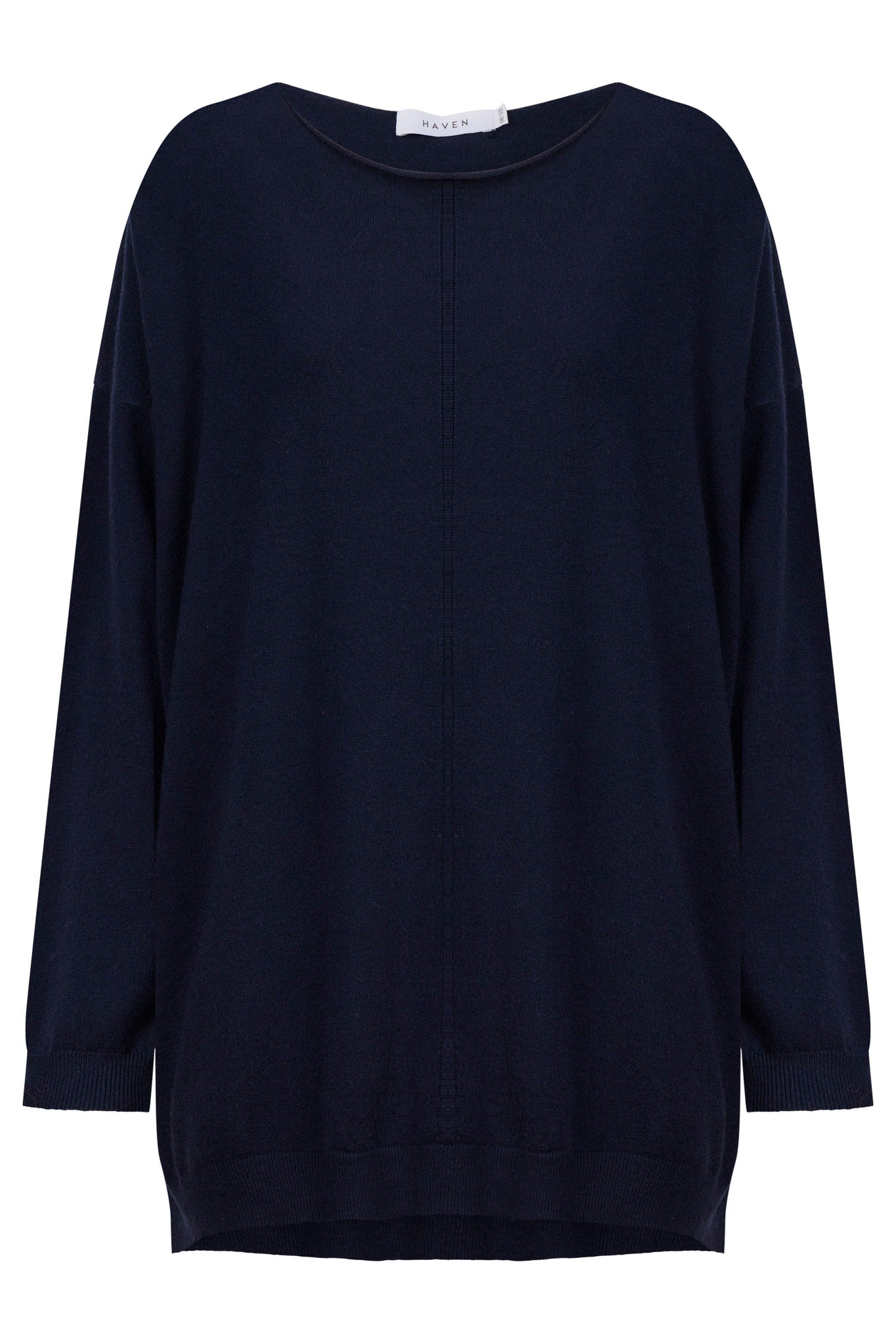 - Boat neckline with rolled seam finish