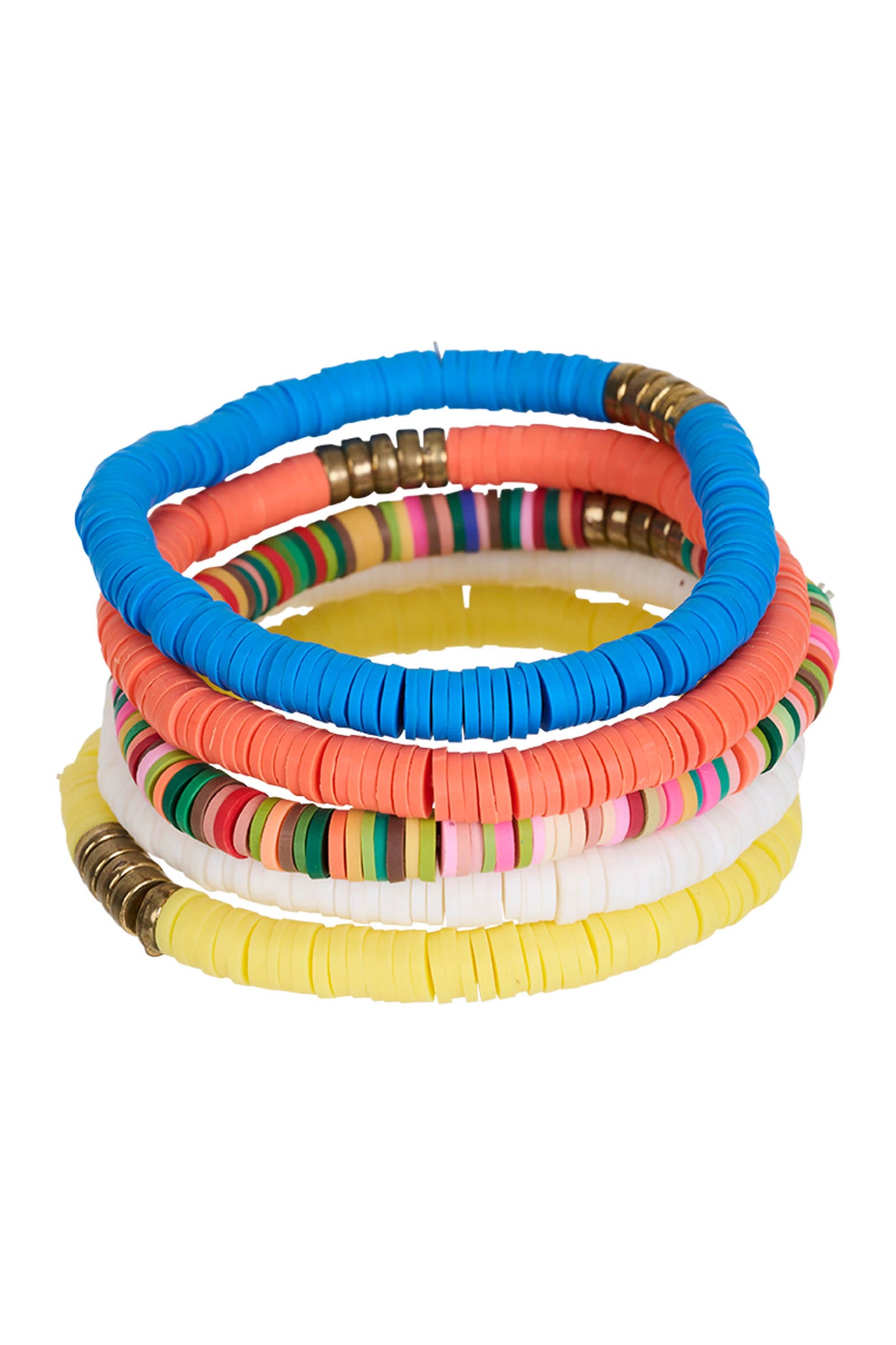 Stack it up! This fun set of coordinated beaded bracelets adds a splash of colour and playful texture to any outfit. Great worn solo or all together, they're an easy win for summer styling or gifting.