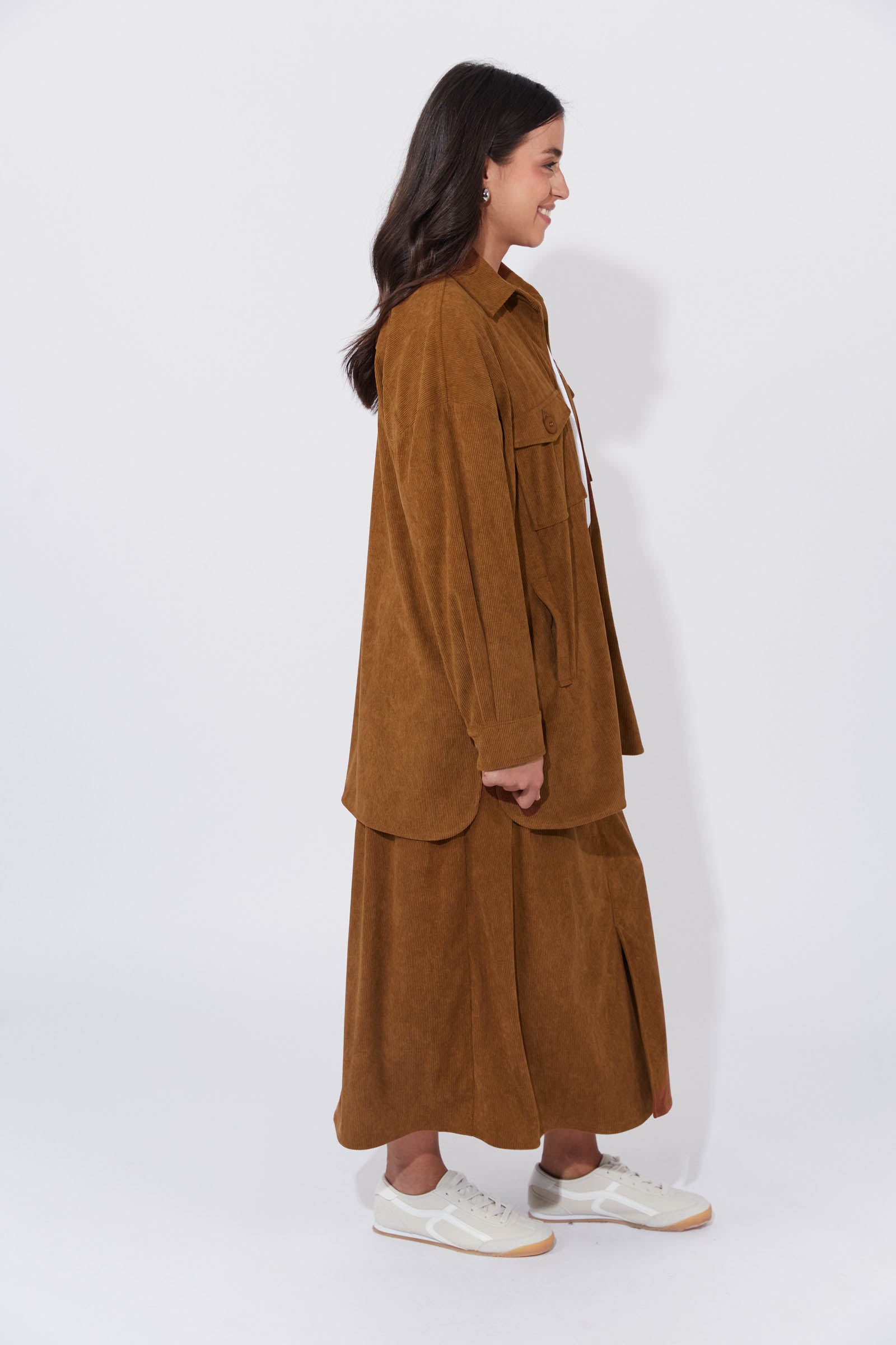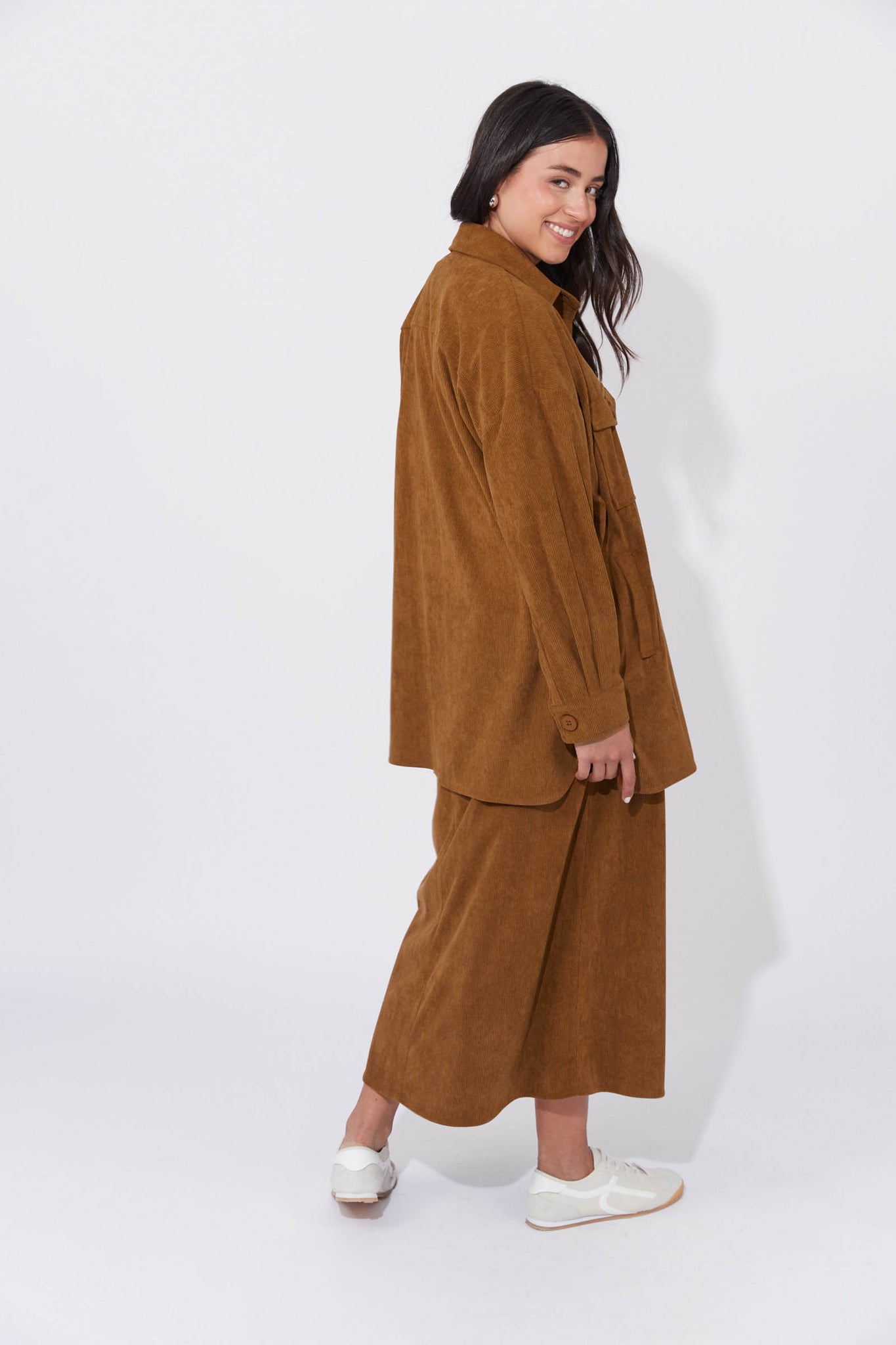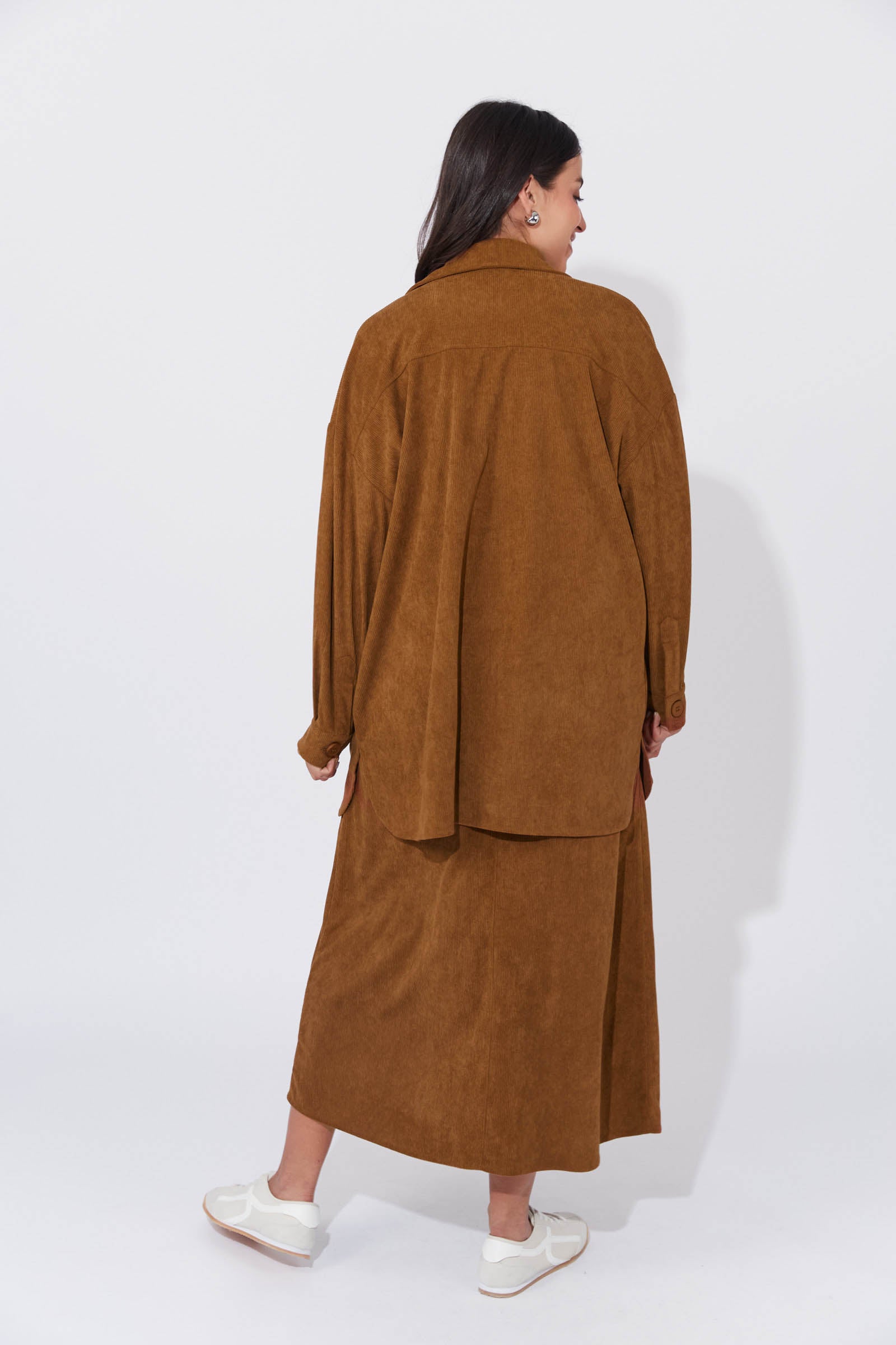 Lighter than a coat yet warmer than a button-down shirt, the Nashville Shacket is perfect for transitional layering. In a soft corduroy, this shacket adds a laid-back, rustic touch to your outfit. The oversized fit offers plenty of space for layering and freedom of movement, making it an ideal choice for casual occasions. Pair it with matching pants and boots for a cohesive look, or keep it casual with leggings and sneakers.
