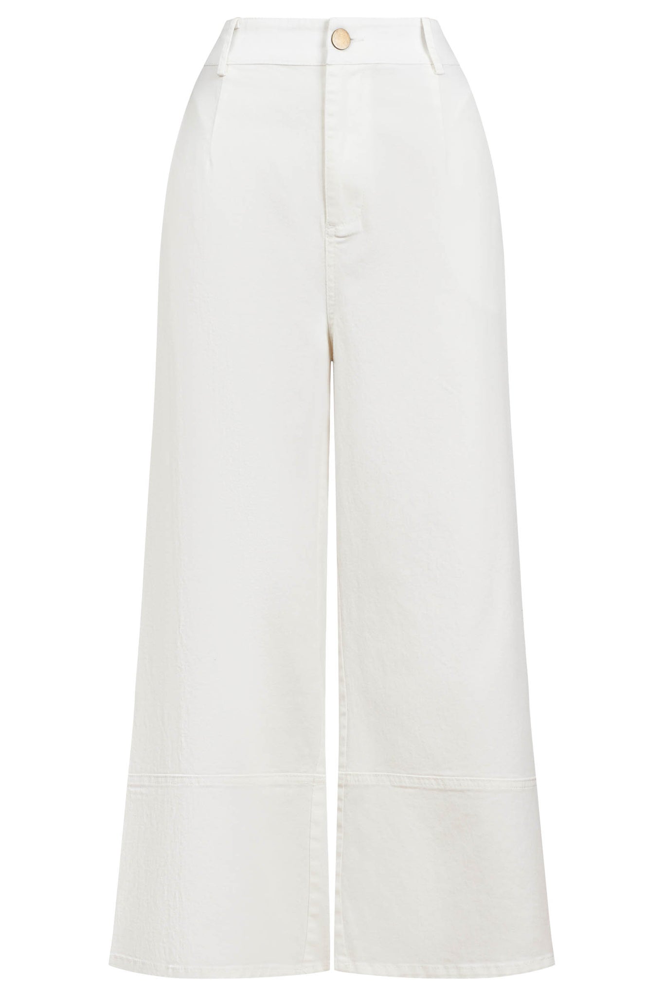 The Panama Pant is crafted from stretch denim for a tailored look that's still comfortable. Designed with a flat front, elasticated back waistband, contrast panel detailing below the knee, and a 7/8-length. Brushed gold hardware and functional side and back pockets complete the look.