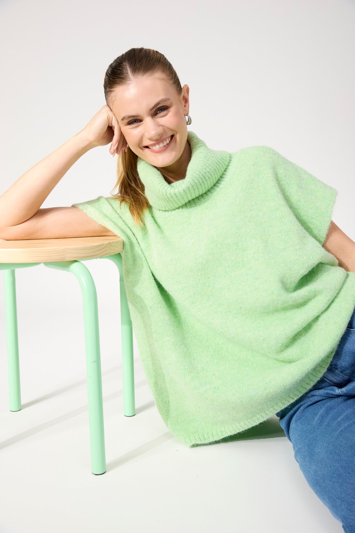 Cosy, relaxed and effortlessly cool. The Valenza Knit Poncho features a wide roll neckline and open armholes, making it perfect for easy winter layering. The fluffy textured knit adds warmth without bulk, while the soft colour palette keeps it wearable and modern.