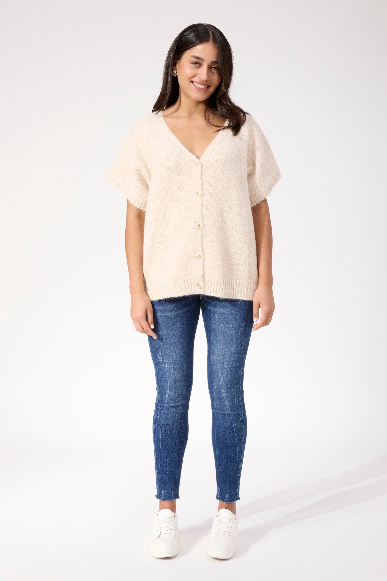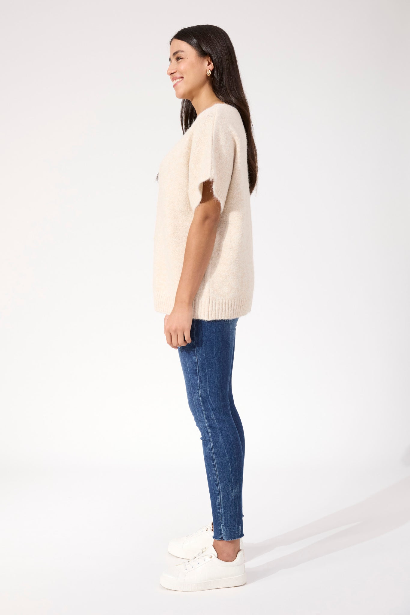 A modern layering piece with a soft feel. The Valenza Knit Vest features a fluffy textured knit with subtle colour variation, designed to be worn layered or on its own. The relaxed shape and wide arm openings make it easy to style while keeping things comfortable and unfussy.