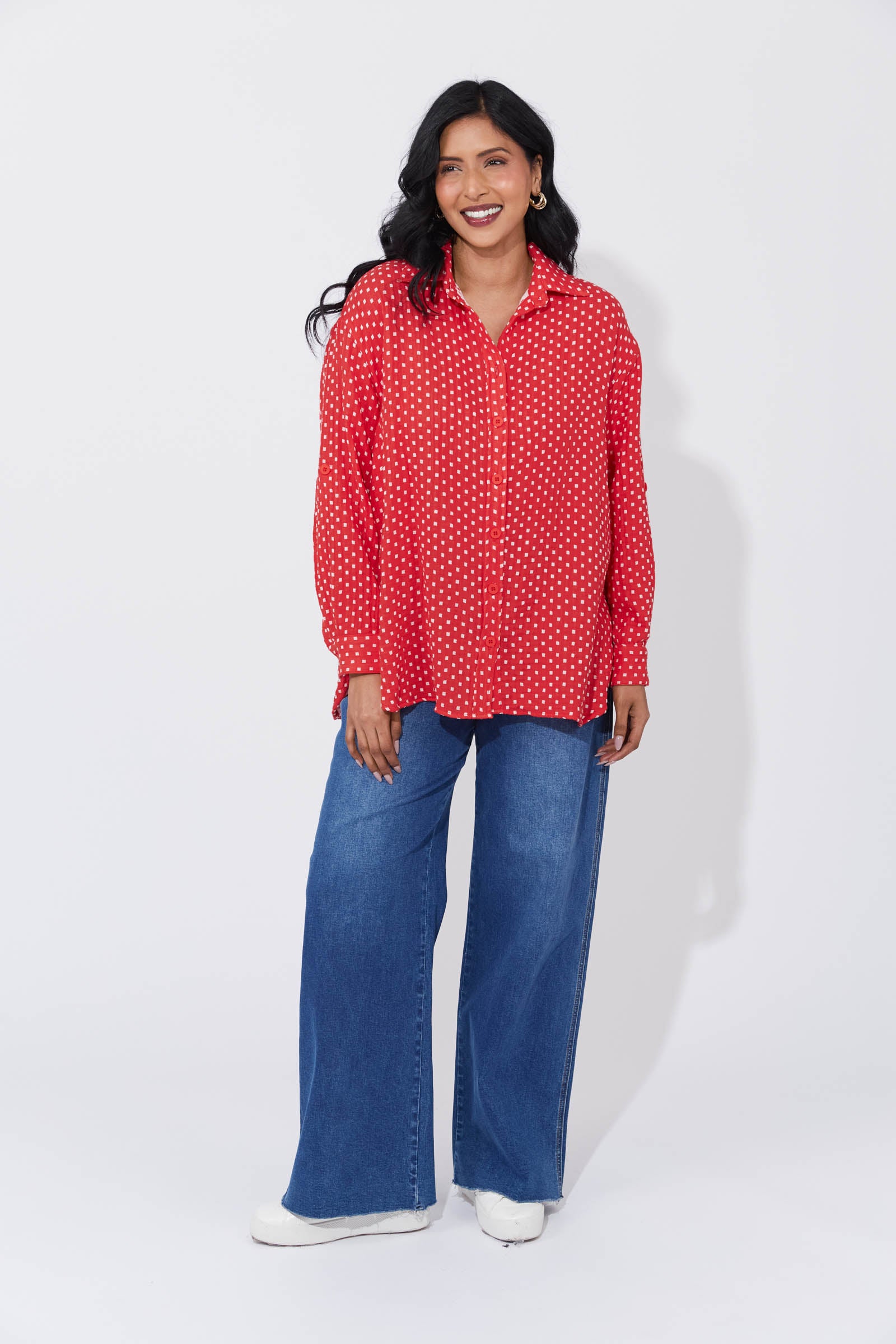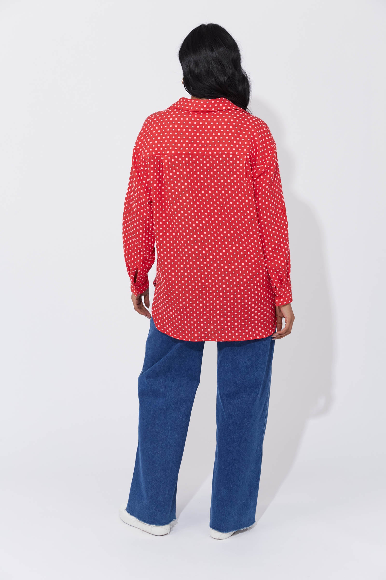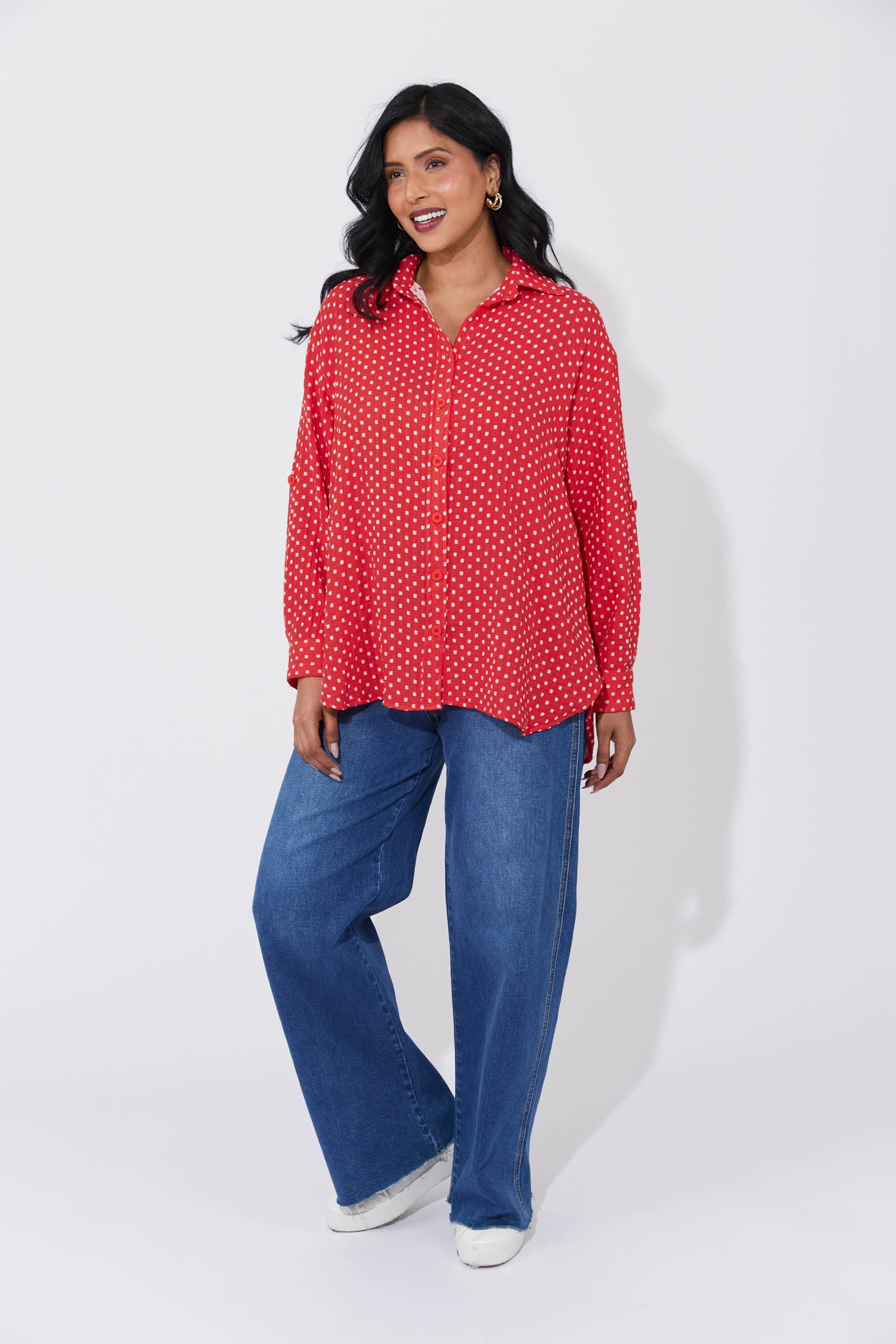 A timeless cotton shirt will go the distance in any wardrobe, and the relaxed Vanuatu Shirt is a perfect example. With its curved high-low hem, you can style it tucked in or left loose for versatile looks. The delicate square print adds charm, while the tab button sleeves provide a striking colour block effect when rolled. Pair it with loose pants for a casual vibe, or layer it under a knit sweater or vest for added warmth and texture.